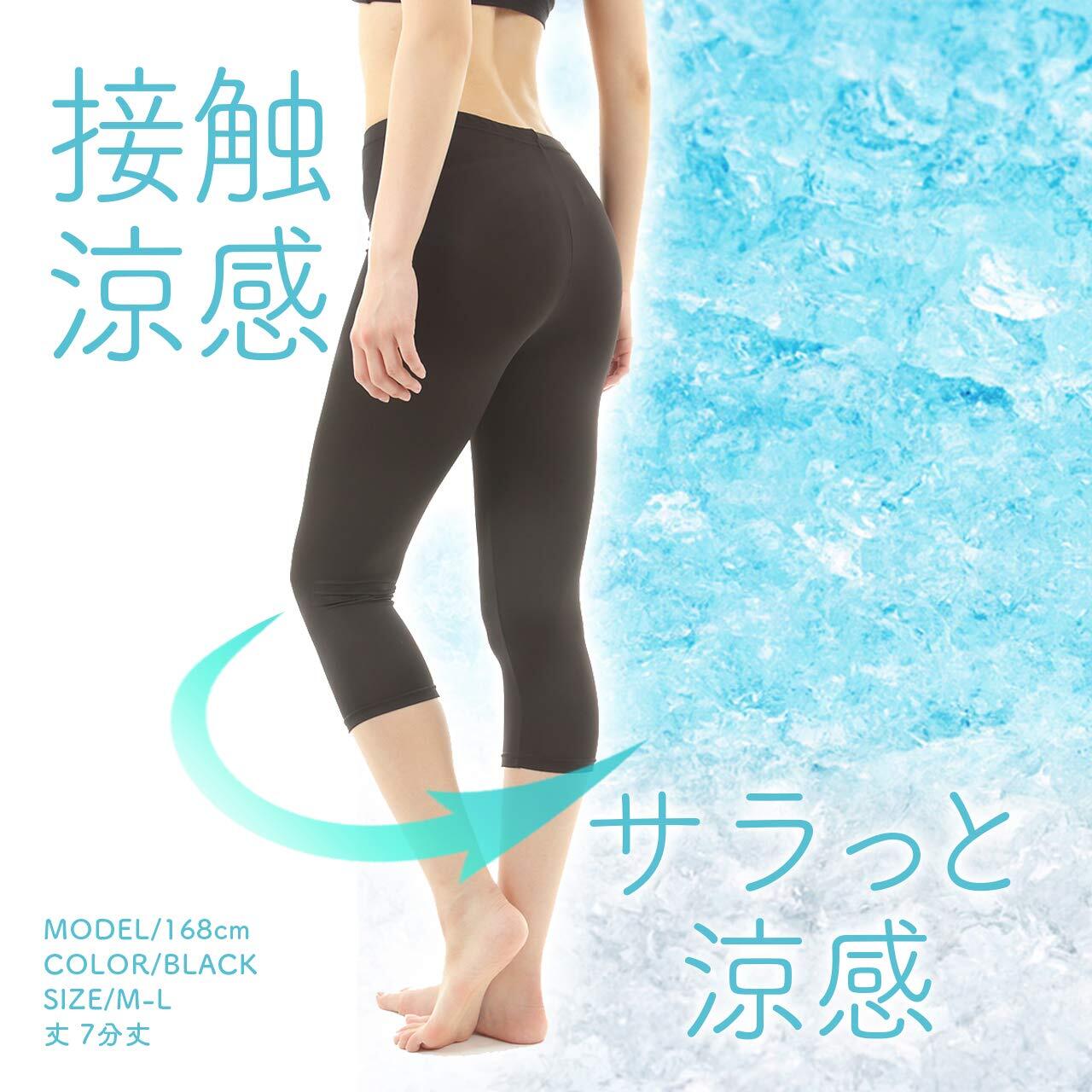 真夏の厳しい暑さで湿気でムシムシする時期に大活躍の接触冷感でひんやり涼しい肌ざわりもスベスベでサラサラのレギンス!