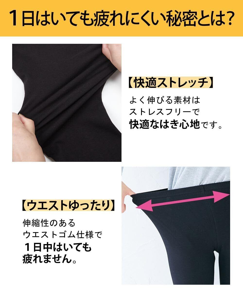 縦横ストレッチ素材で動きやすく、1日中着用しても疲れにくい快適な着心地です。