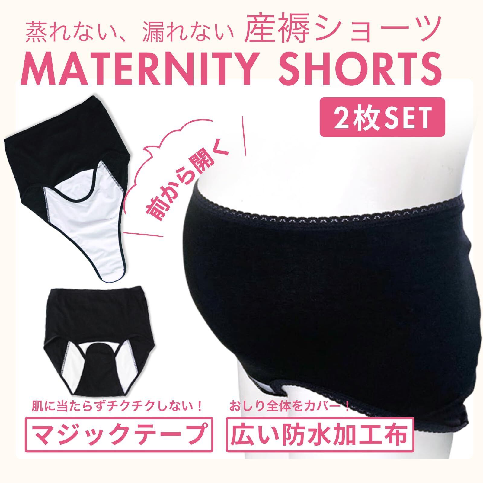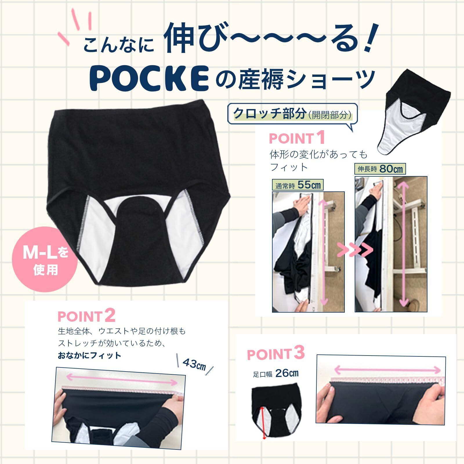 [POCKE] ポッケ 産褥ショーツ マタニティショーツ マタニティ 出産準備 妊婦用 入院 産後 前開き コットン マジックテープ ブラック 黒