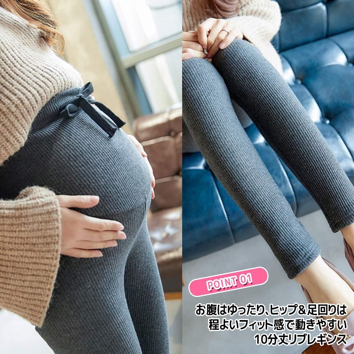 マタニティ リブ レギンス スパッツ タイツ パンツ ストレッチ ウエスト調整 妊婦 レディース 伸びる 部屋着