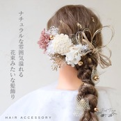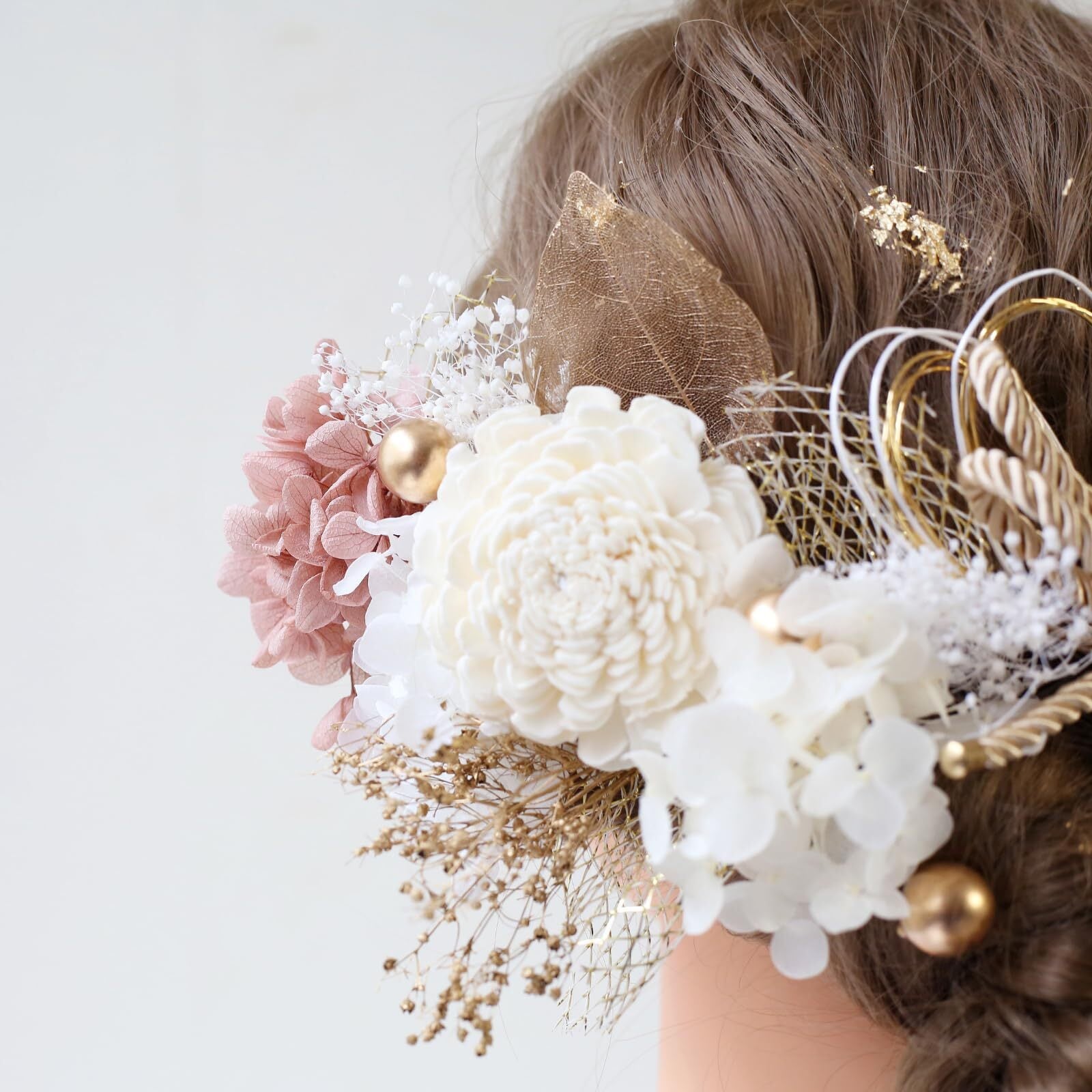 Bud Flower バドフラワー 髪飾り 成人式 卒業式 ドライフラワー 水引 金箔 和装 振袖 袴 ヘッドドレス 結婚式 七五三 アクセサリー hair-180 (ピンクベージュ)