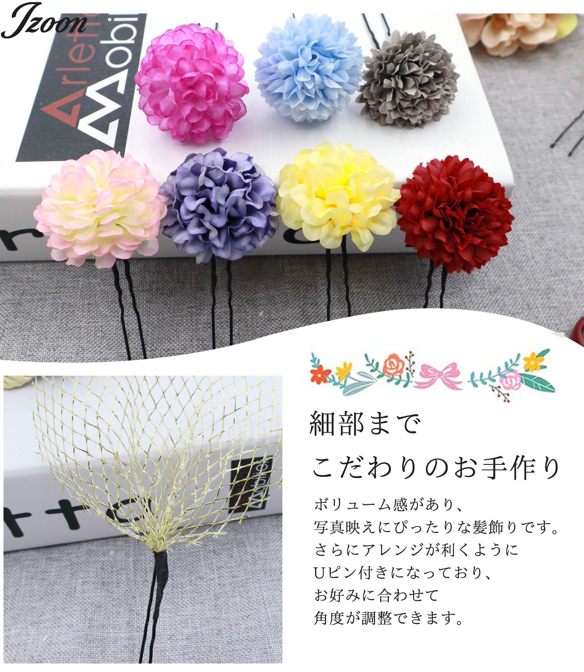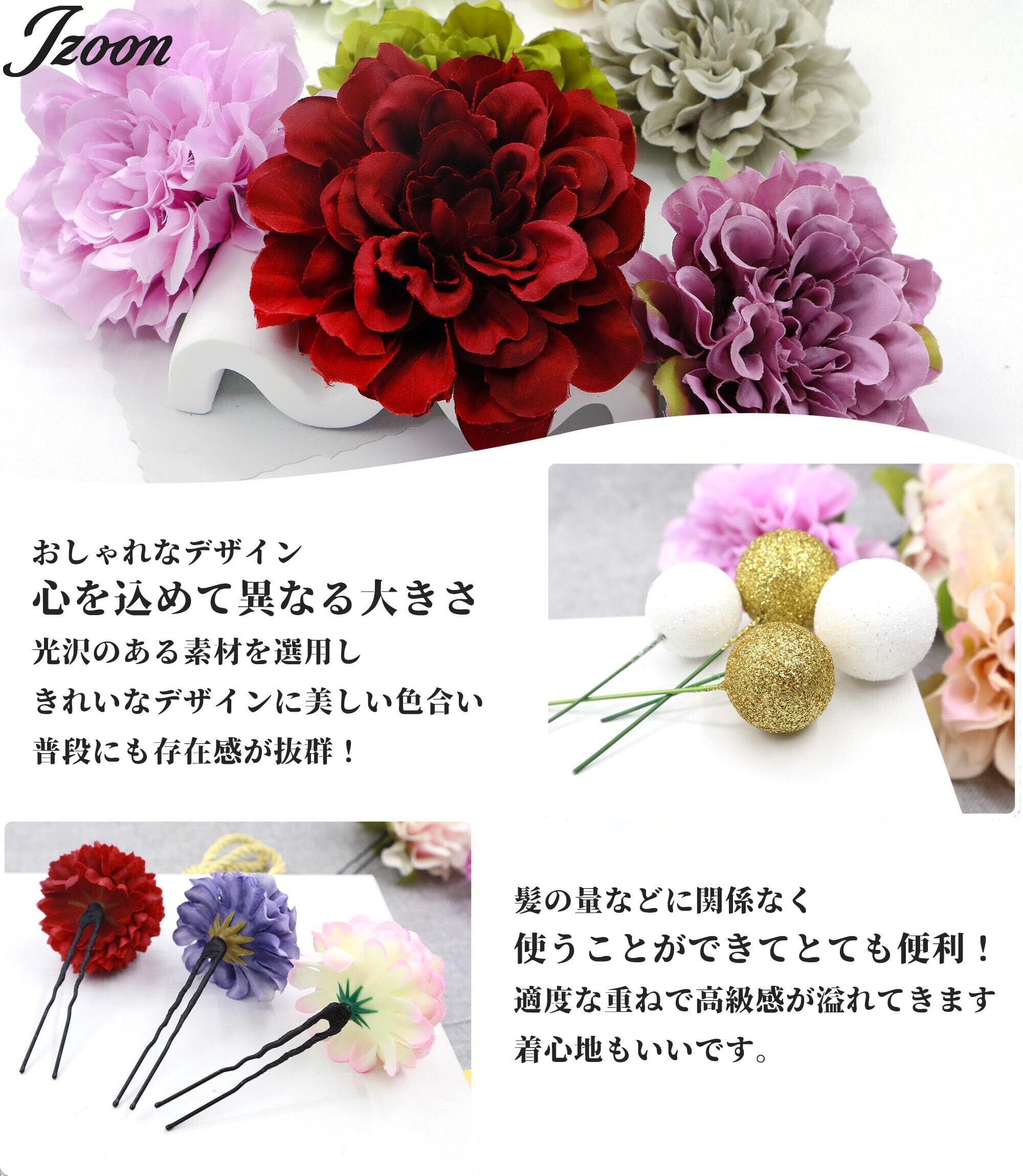 【様々なシーンで】各パーツがUピンまたはIピン仕様になっております。ご使用時に量を加減でき、色んなアレンジをお楽しみいただけます。 成人式や花火大会などの和服から結婚式やパーティーなどの洋服まで様々な場面で大活躍です。