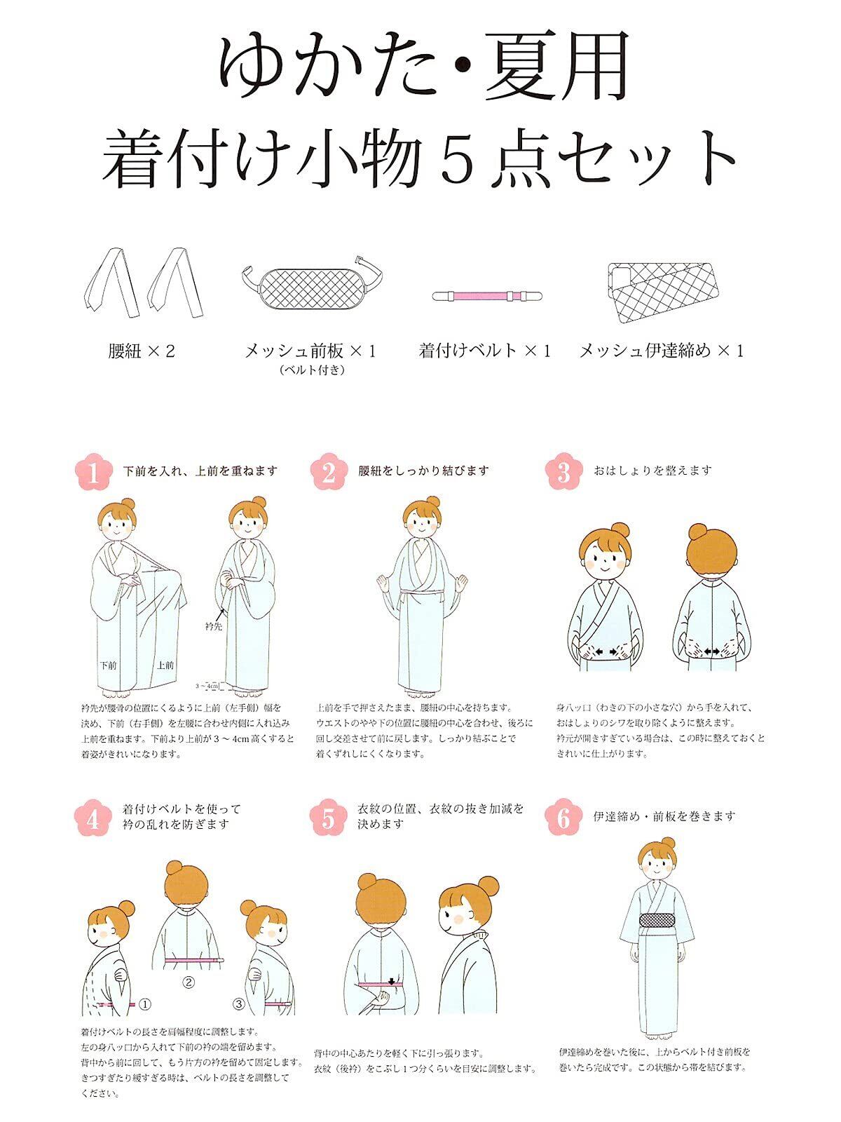 浴衣小物 5点セット ゆかた 着付け小物 メッシュ前板 メッシュマジックベルト きものベルト 腰ひも2本