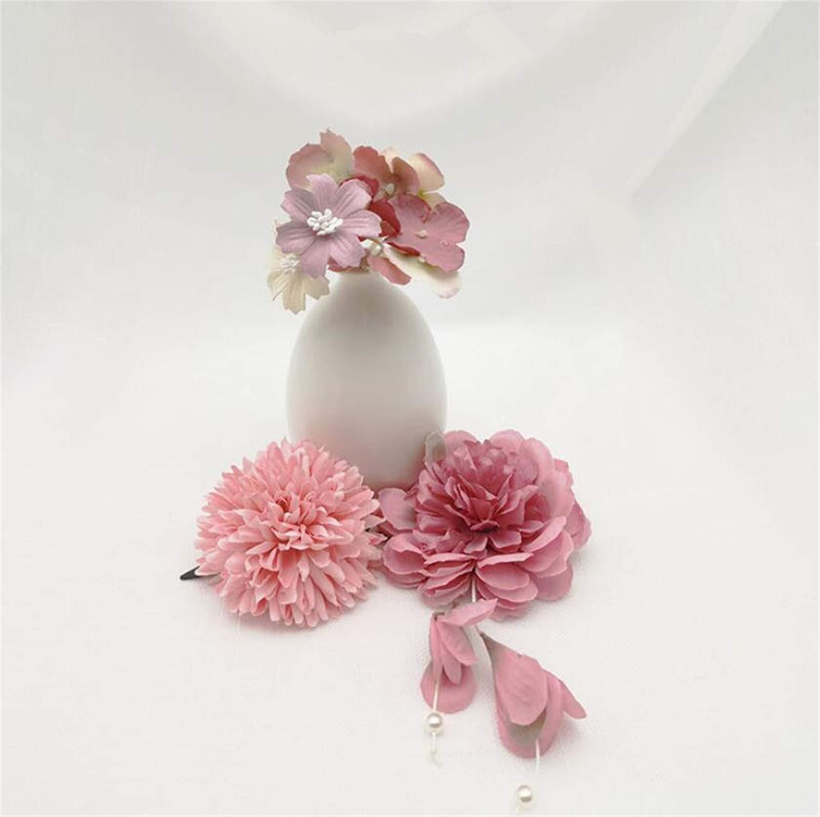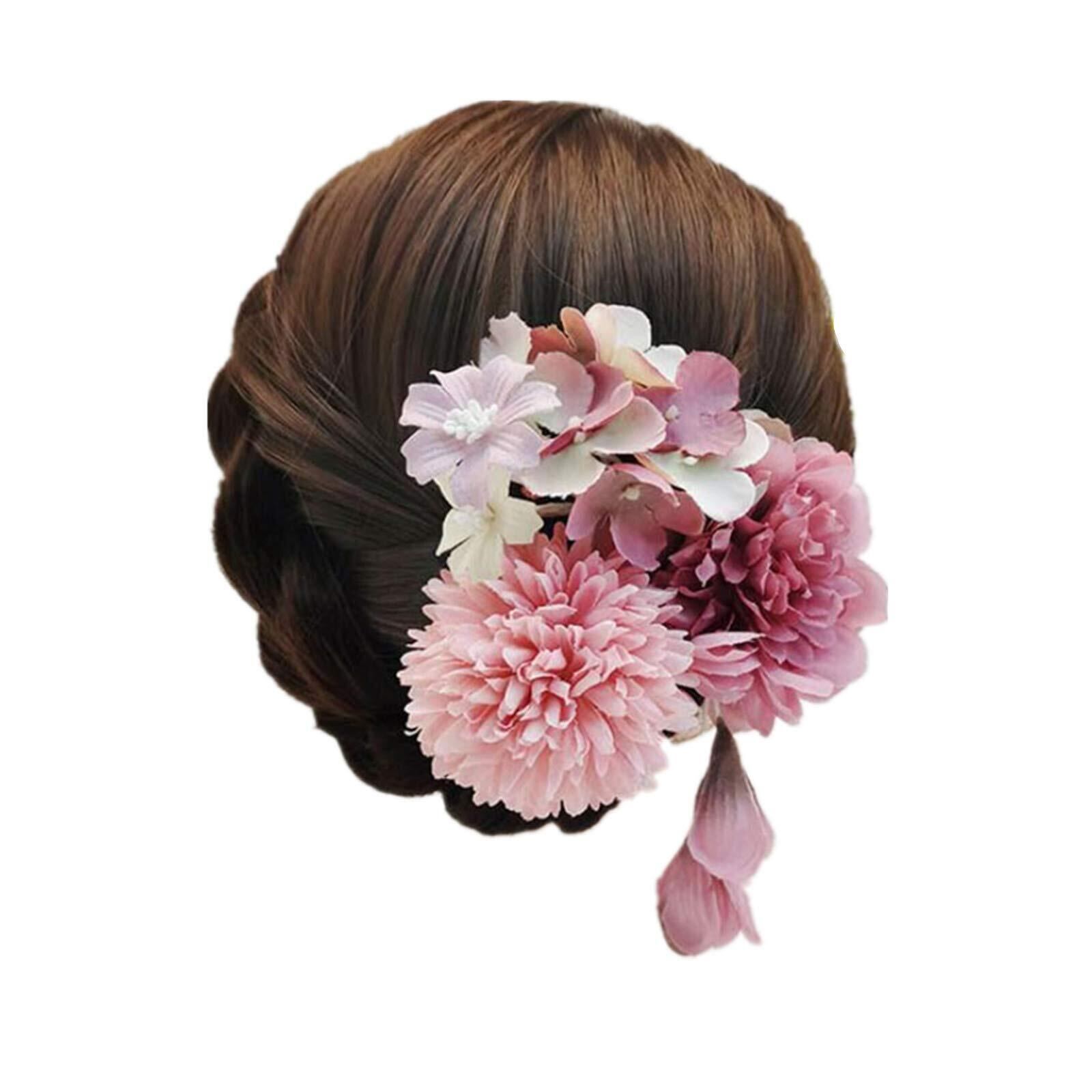 和装 髪飾り 造花 フラワー ヘアピン ヘアクリップ 七五三 成人式 卒業式 結婚式 振袖 浴衣 袴 着物 和装 ヘアアクセサリー 3個セット (ダークピンク)