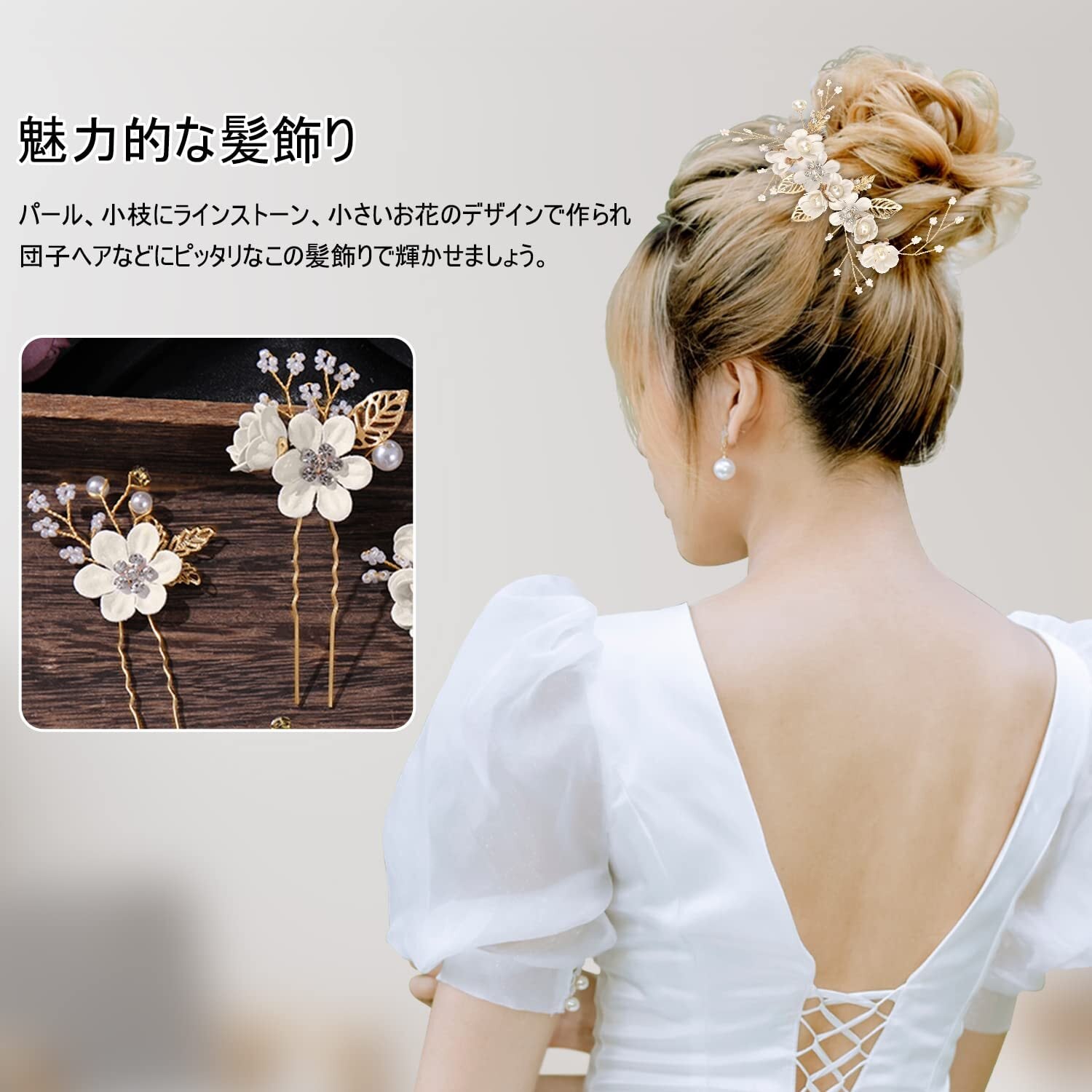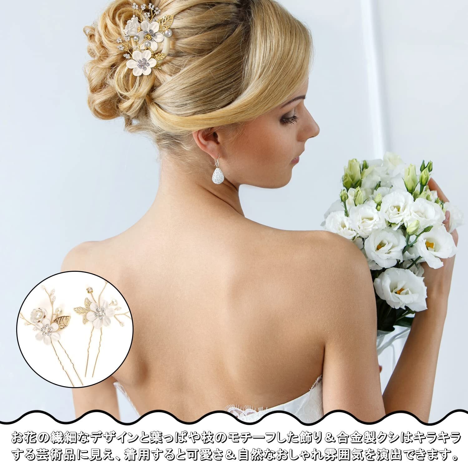 「装着が快適」-ヘアピンを髪の中に挿し込むだけで操作簡単です。ヘアアクセサリーは合金素材を採用し、錆びにくいです。しかも本体が軽くて、頭につけるのは気持ち良くて、一日中つけても落ちません。