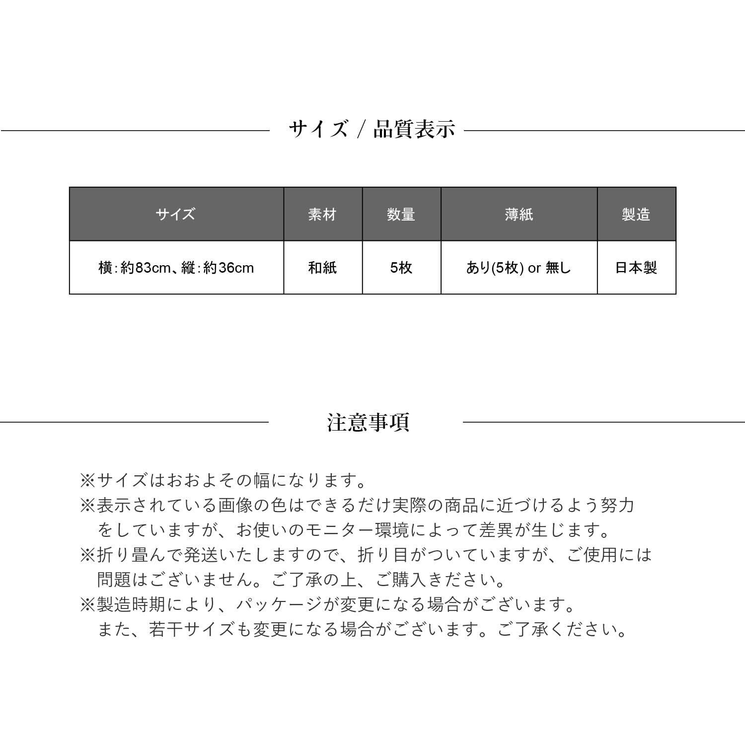 【バリエーション】83cm薄紙ありタイプ/83cm薄紙無しタイプ 【サイズ】横 約83cm、縦 約36cm