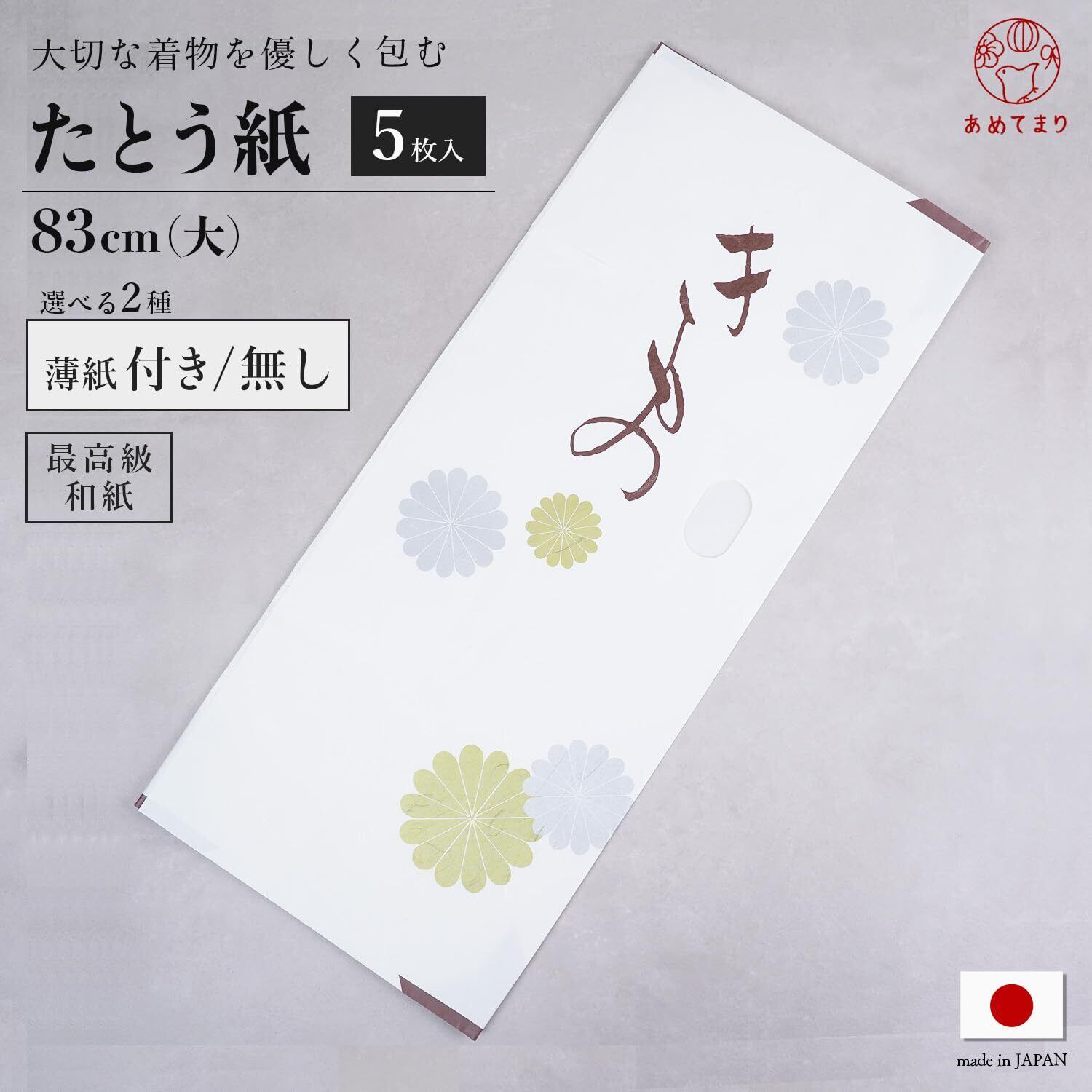【数量限定】[あめてまり] たとう紙 5枚セット 大 83cm 着物用 金菊柄 [中紙あり] 日本製 薄紙 雲龍紙 窓付き 収納 文庫紙 たとうしがみ 畳紙 多当紙 ロング 着物 衣替え 和ダンス用 (薄紙あり) | 無意味ステッカー