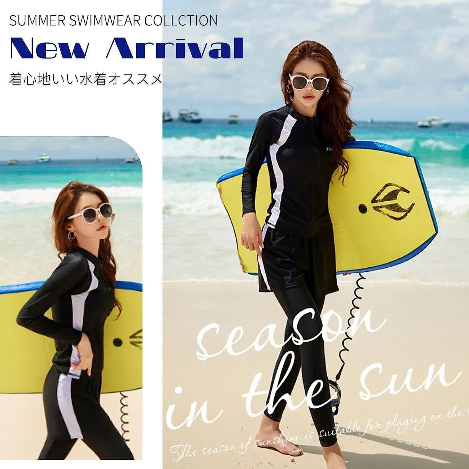 【在庫処分】[RainKind] フィットネス水着 レディース 水着 5点セット 長袖ラッシュガード 体型カバー セパレート ショートパンツ タンキニ オシャレ UVカット女性用長袖水着 接触冷感 水陸両用 ソフト肌触り | 無意味ステッカー