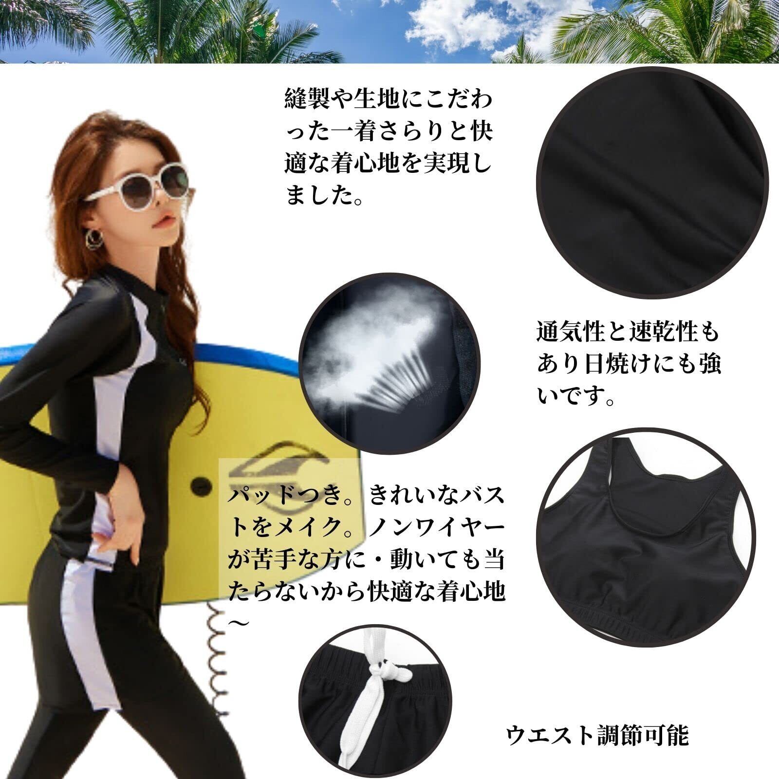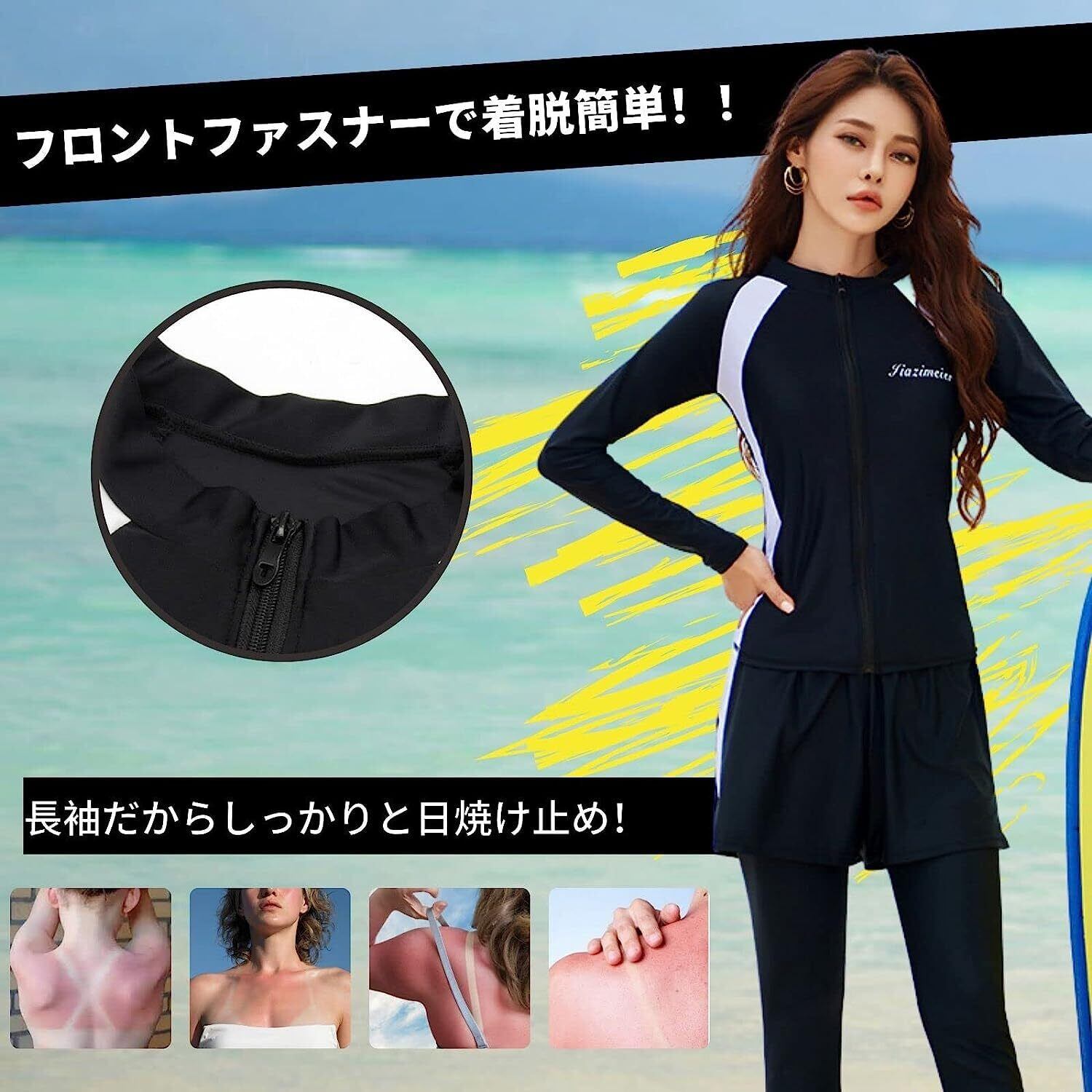 【5点セット内容】長袖ラッシュガード+スポーツブラ+ショートパンツ+ショーツ+レギンス。前面ジップアップなので着替えも楽々◎もちろん紫外線対策もばっちりでお肌を守ります、防菌防臭・UVカット
