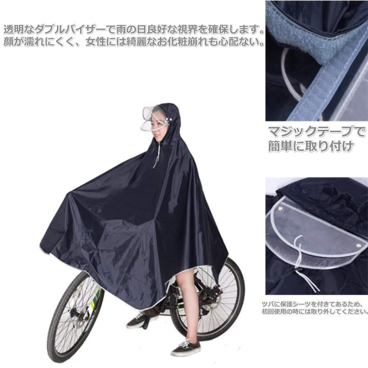 [caffmo] 男女兼用自転車バイク 長いポンチョ レインコート サイクル レインポンチョ 厚手生地 防水 通勤 通学 大きい二重ツバ 収納袋付き フリーサイズ4XL(145 * 120 * 140 * 15cm)