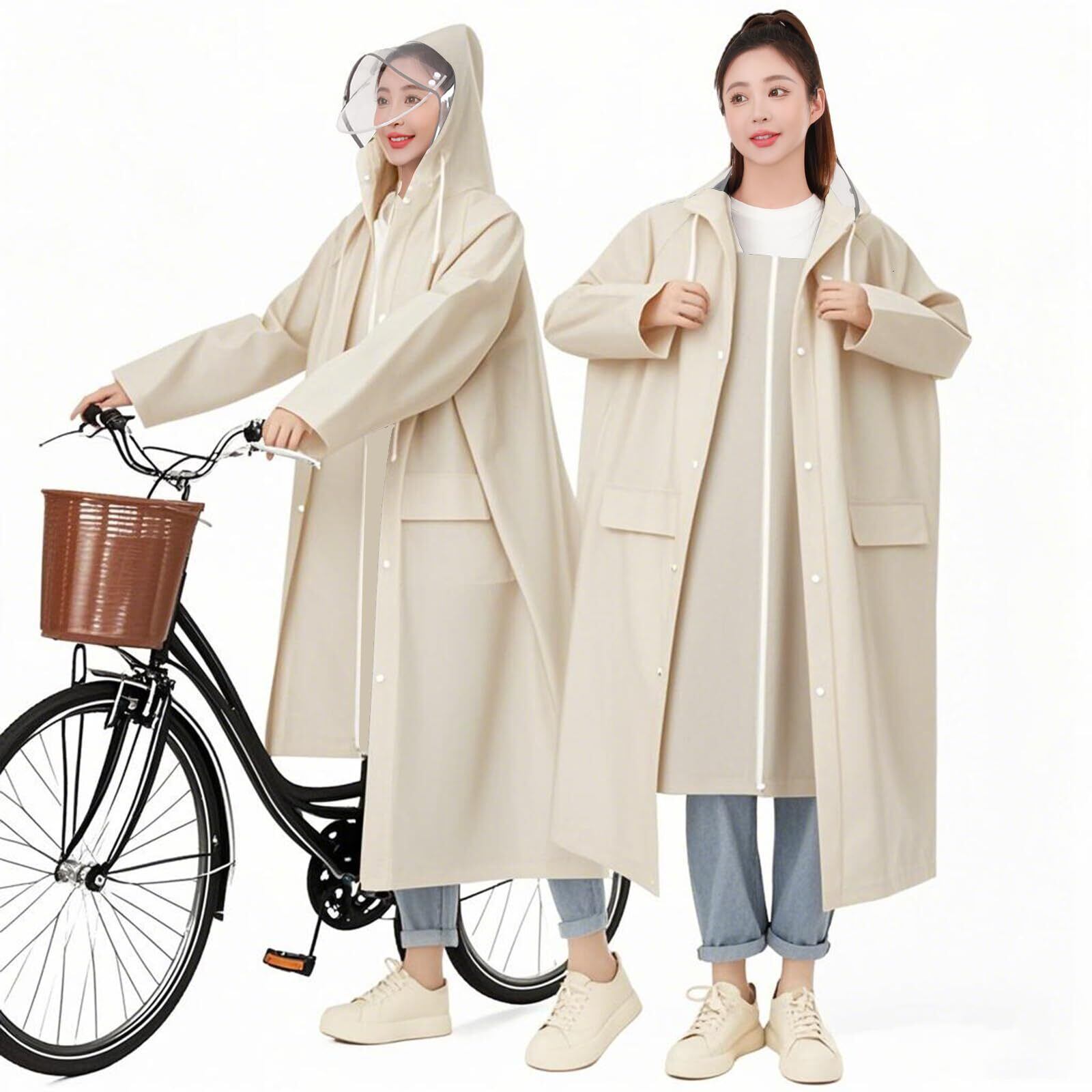 [Meetpon] レディース レインバイザー付きレインコート 自転車用 ロング丈 超軽量 豪雨台風梅雨対策