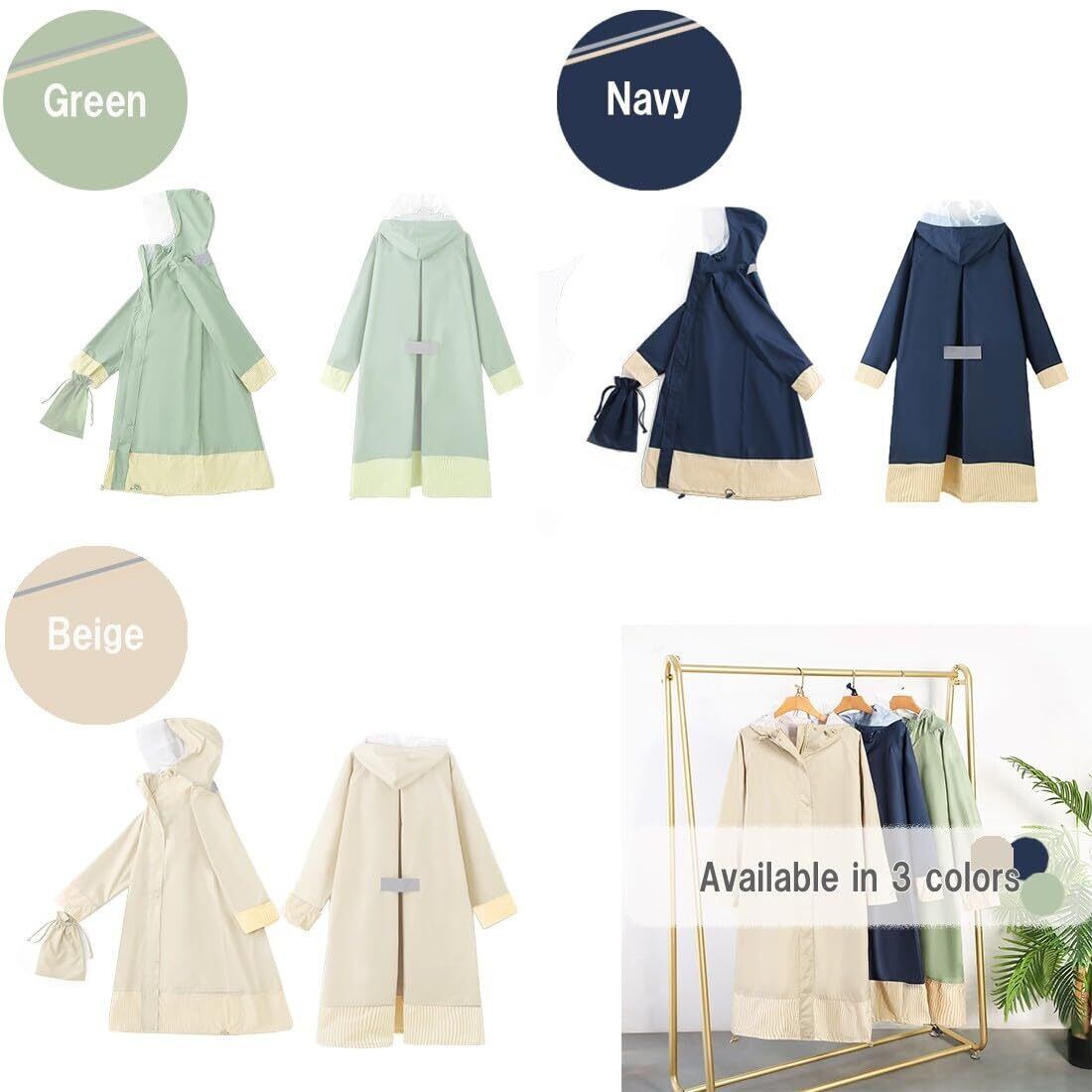 便利な機能が満載の快適かつスタイリッシュなレインコートです。日常での使いやすさを重視し、通勤通学、自転車運転、リュックを背負ったままの着用も、雨の日でもストレスなく過ごすことができます。背面の身幅調整プリーツによりリュック対応だけでなく、体格や衣類の厚みの心配もなし。どんなファッションにもマッチするロング丈のお洒落なレインコートです。