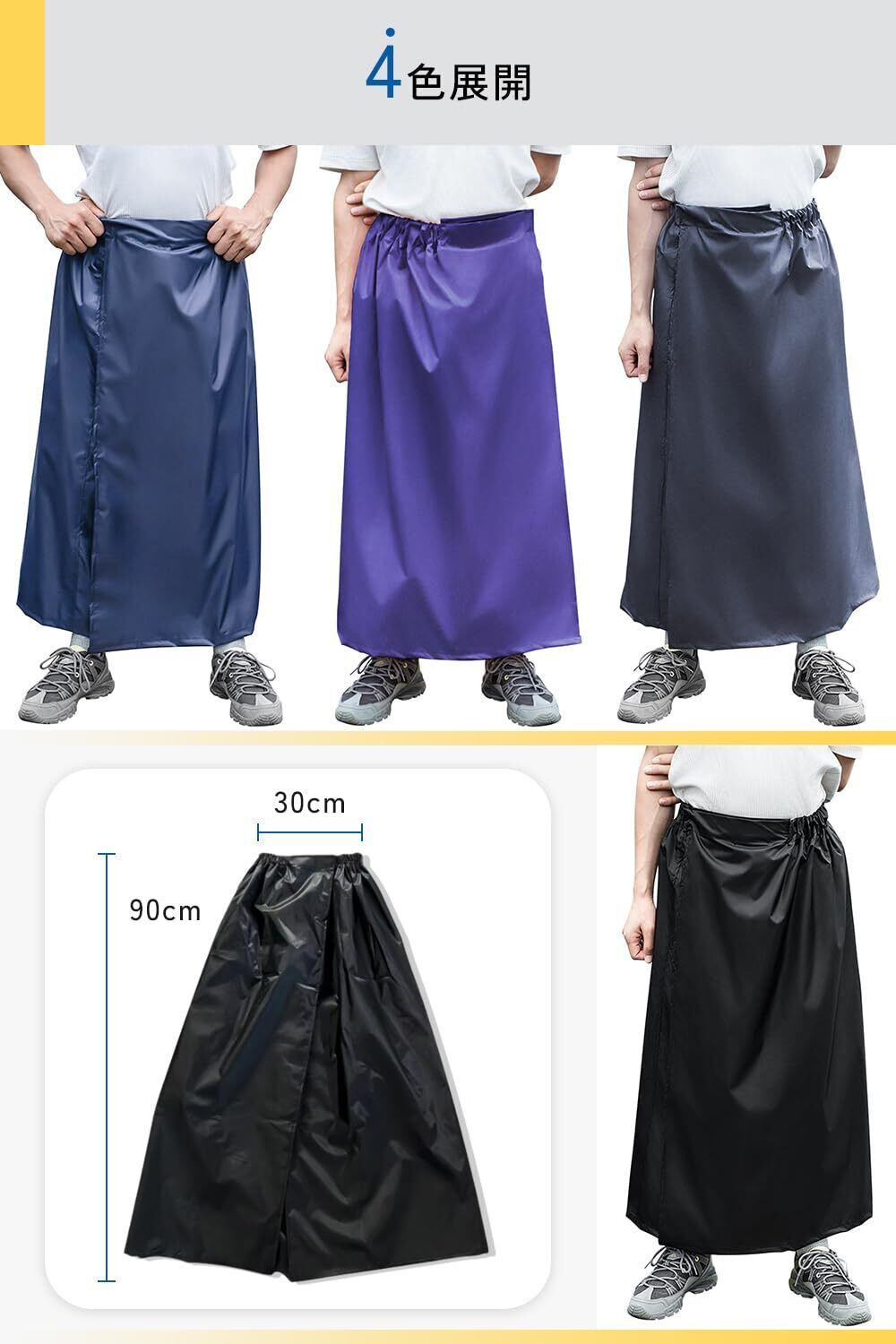【梅雨対策!防水レッグカバーとレインスカート】レッグカバーの履き口には伸縮バンド+ストラップを採用。足首の太さに合わせて締め付けを自由に調節でき、歩行時やサイクリング時でもずれにくく快適なフィット感を実現します。 レインスカートはマジックテープを採用。スカートやパンツの上から簡単に着用可能です。駅や学校などでサッと脱ぎ着できる便利アイテム。