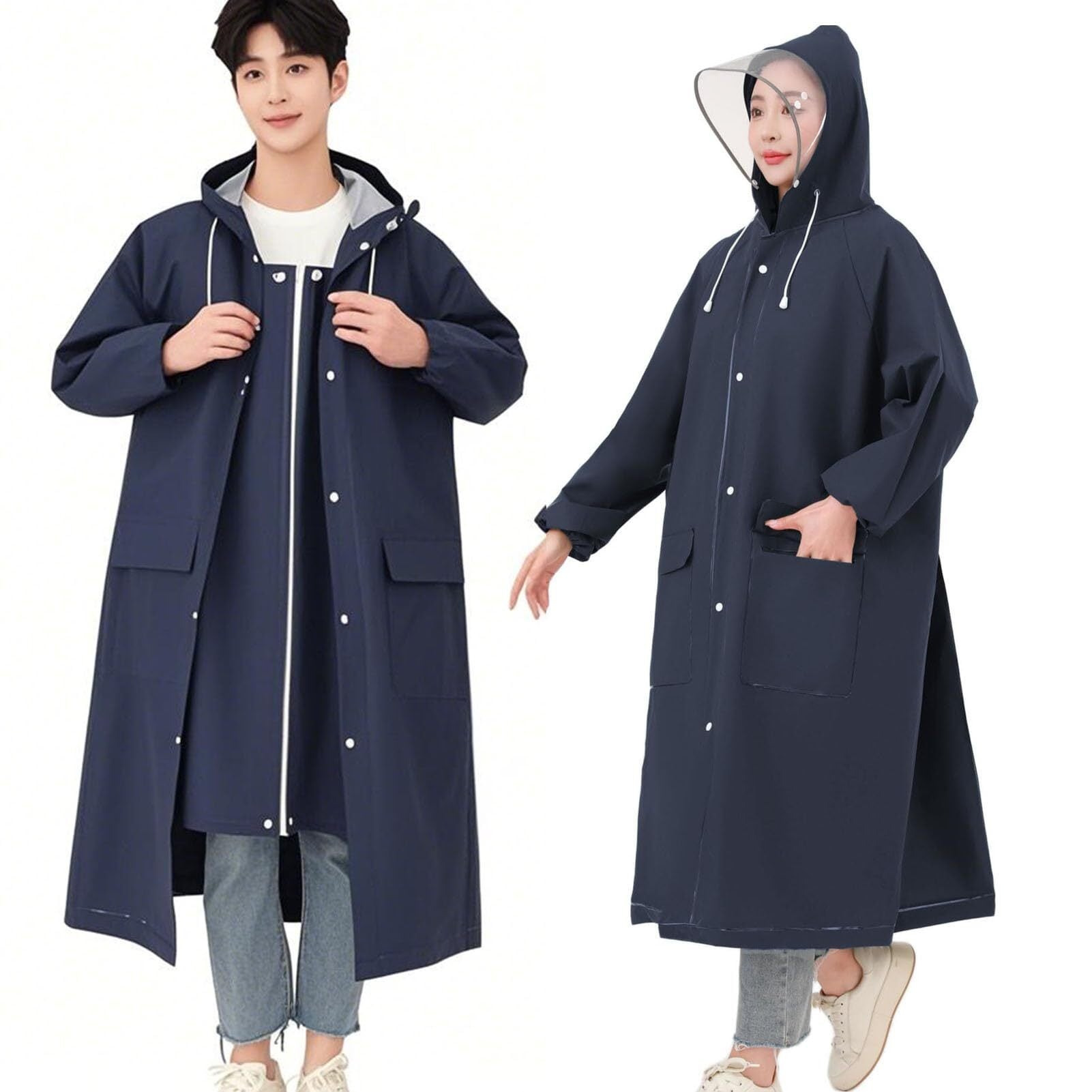 [Silentty] レインコート 自転車 レインウェア レディース メンズ バイク レインポンチョ 【二重透明レインバイザー付き】膝丈 ロング 通勤 通学 雨合羽 おしゃれ 男女兼用 梅雨対策
