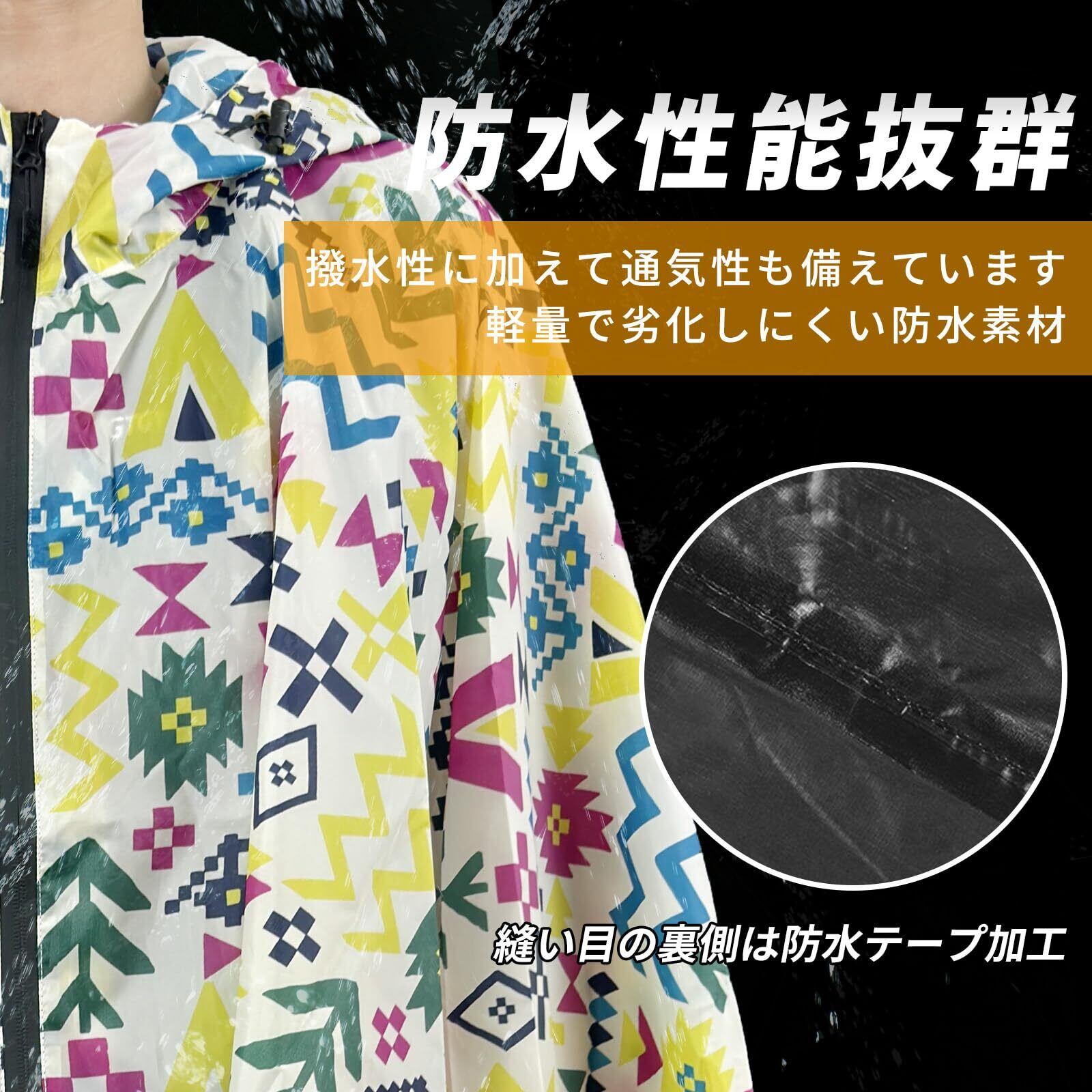 【防水&通気性のある素材】 100%ポリエステルと環境に優しいPUコーティングを使用し、優れた防水性と通気性を備えた雨具;大雨でもしっかり防水し、長時間快適に着用可能;耐久性にも優れたカッパ。