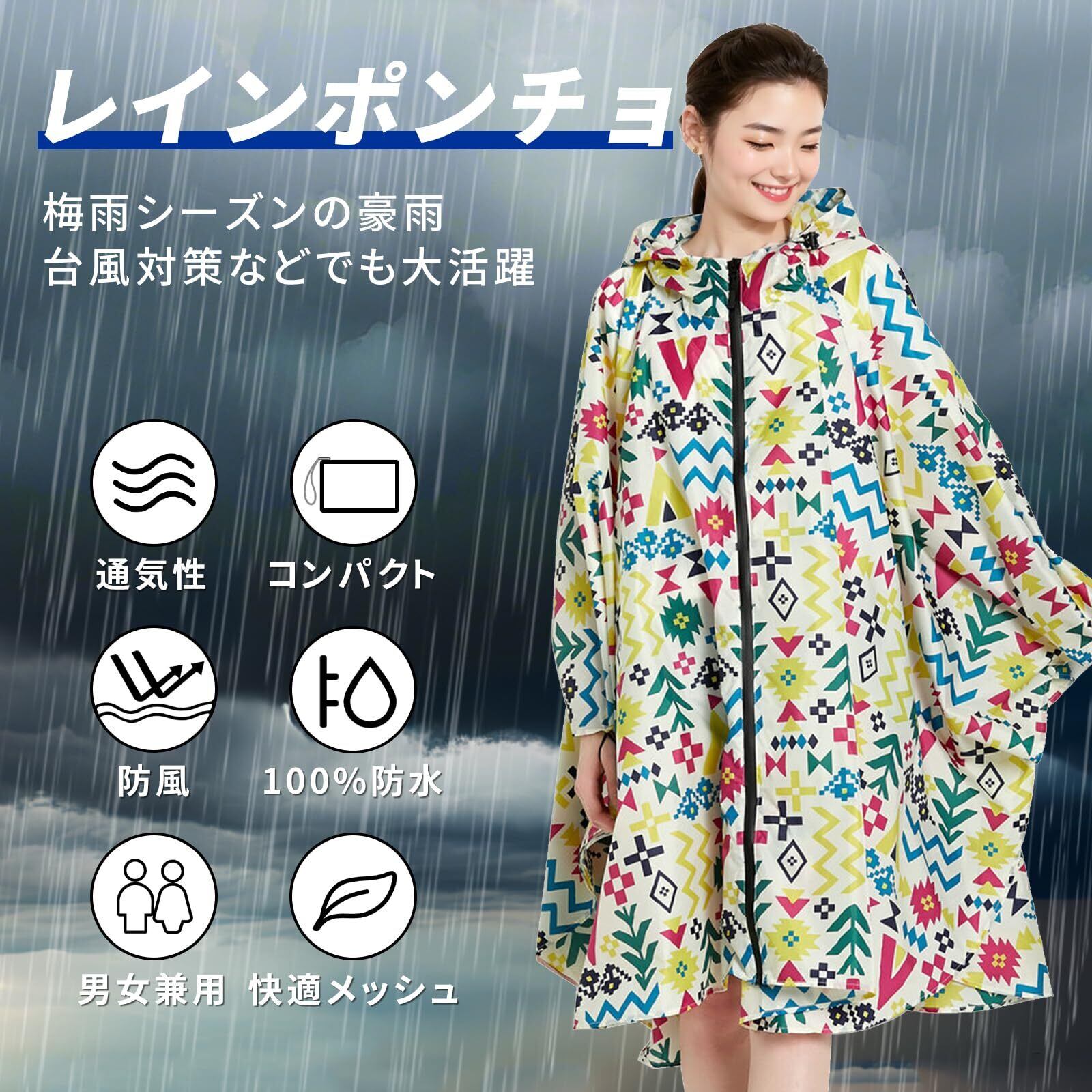 【色んな場合に適用】自転車用レインコート、通勤、ショッピング、通学、散歩、旅行、スポーツ観戦など、どんな場面でも活躍するレインコート;大雨の日でも自由に動ける;旅行ではファッション性のあるコートとしても利用可能。ポンチョは複数の色とプリントからお選びいただけます