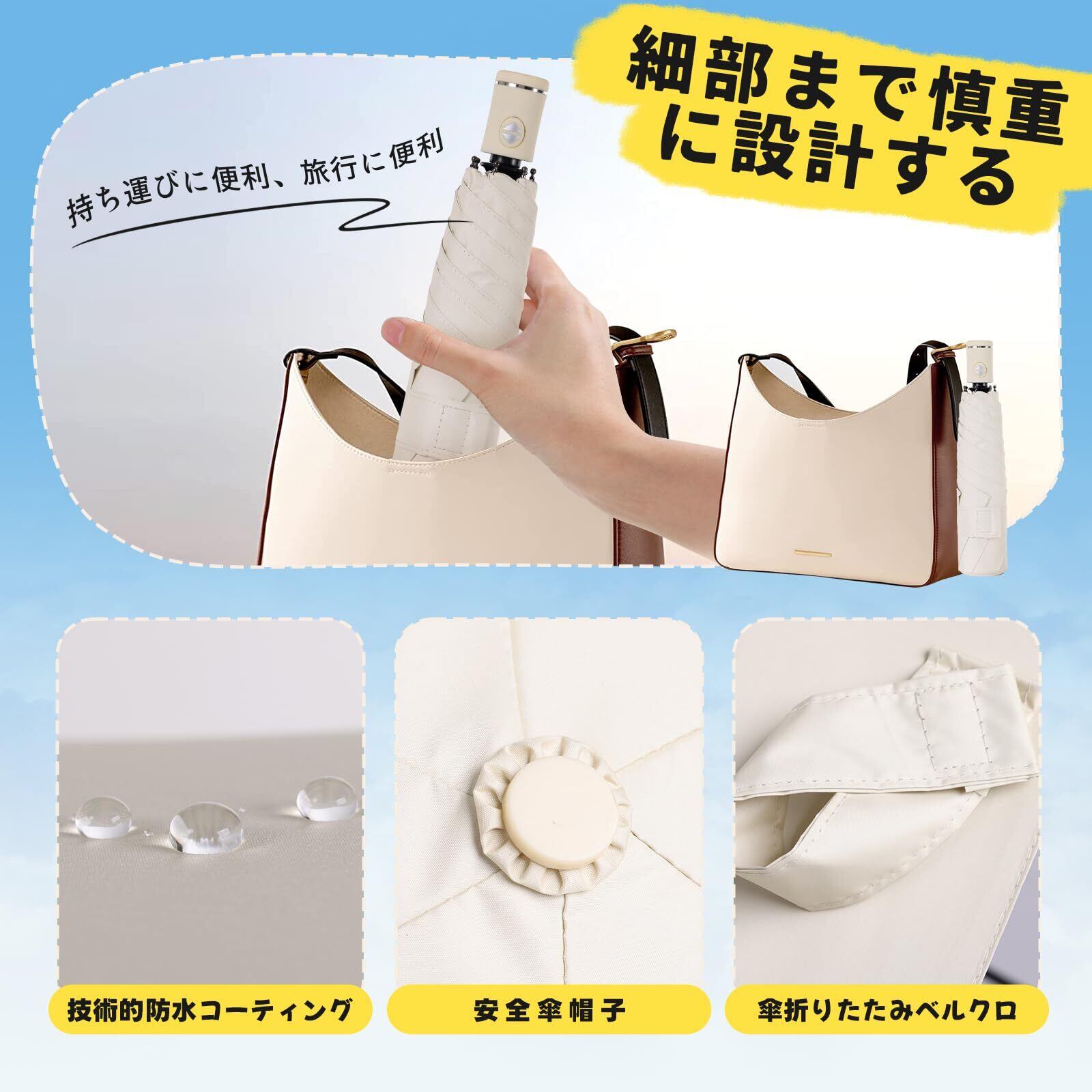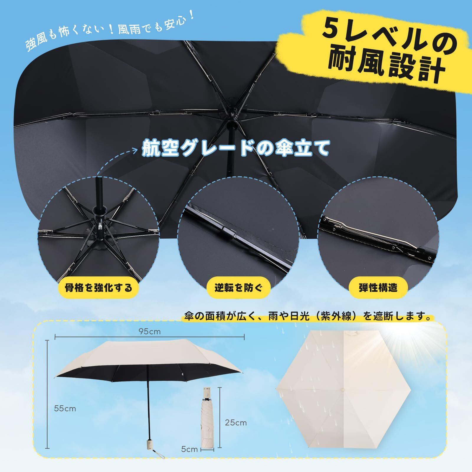 【晴雨兼用&防風】日傘は特殊加工が施されており、防水性能に優れ、内側は多層コーティング加工が施されており、紫外線を効果的に遮断できるので、日傘としてもご使用いただけます。 6本の骨は高強度、耐腐食性のカーボンファイバー製の耐風傘骨で作られており、接合部は複合加工で補強されており、強い柔軟性があり、強風にも耐えられます。