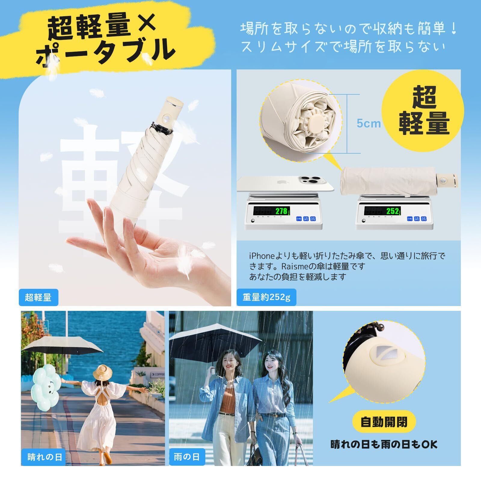 【コンパクトで軽量で丈夫】Raisme折りたたみ傘は、先進的で軽量で耐久性のあるポリエステル繊維とアルミ合金フレームを採用しており、軽量でコンパクトで丈夫です! 広げた時の直径は95CM、折りたたむと厚さはわずか5CMと超薄型コンパクトで、ポケットや化粧ポーチにも収まります! さらに、重さはわずか252グラムと非常に軽く、毎日の旅行に最適です。 通勤、通学、旅行、ハイキング、アウトドアなど幅広いシーンで活用でき、年齢や性別を問わず幅広い方にご使用いただけます!