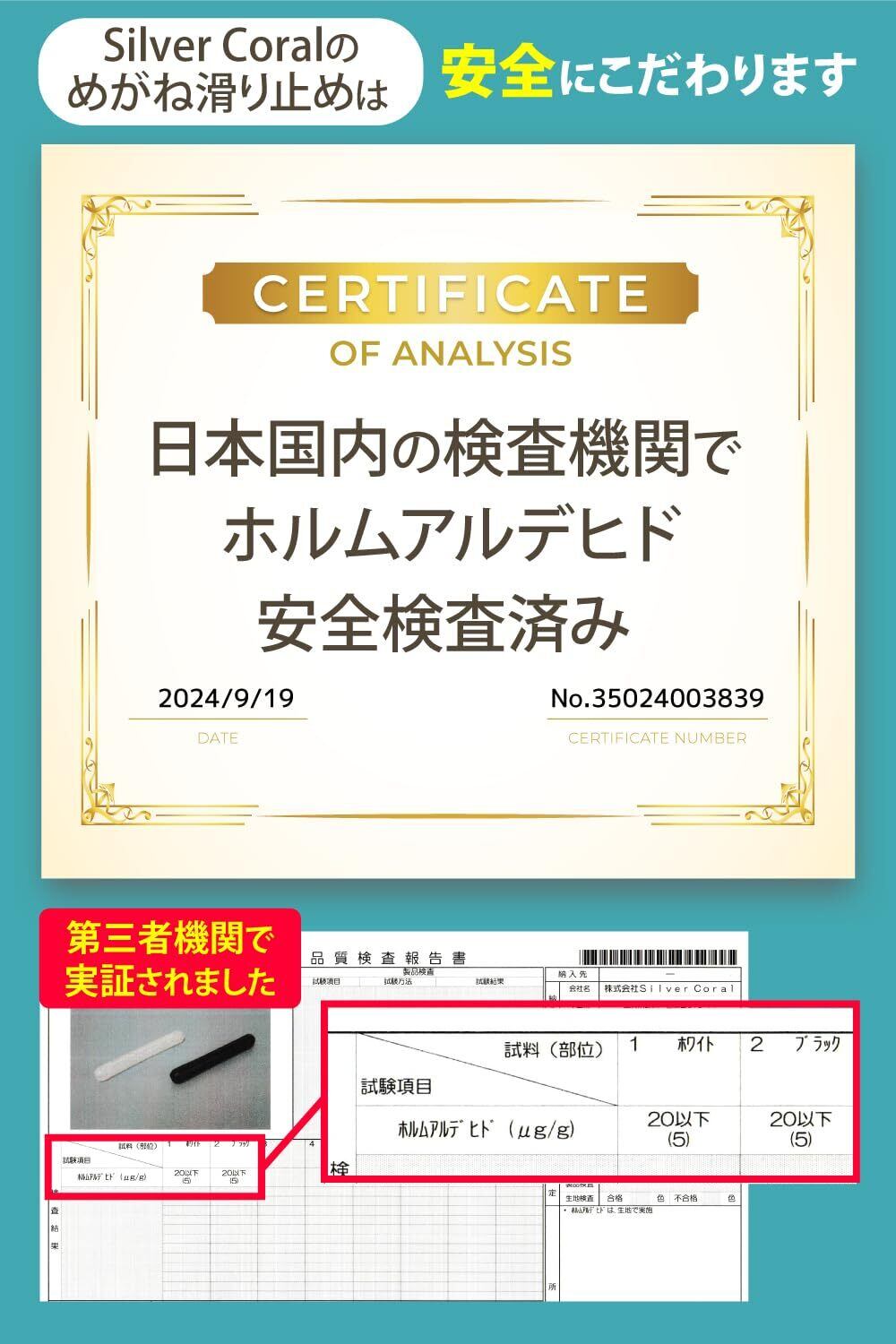 日本国内の第三者検査機関にて有害物質検査をクリアした安全なシリコン原材料を使用
