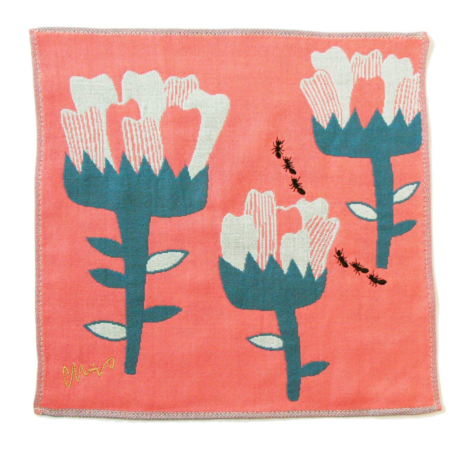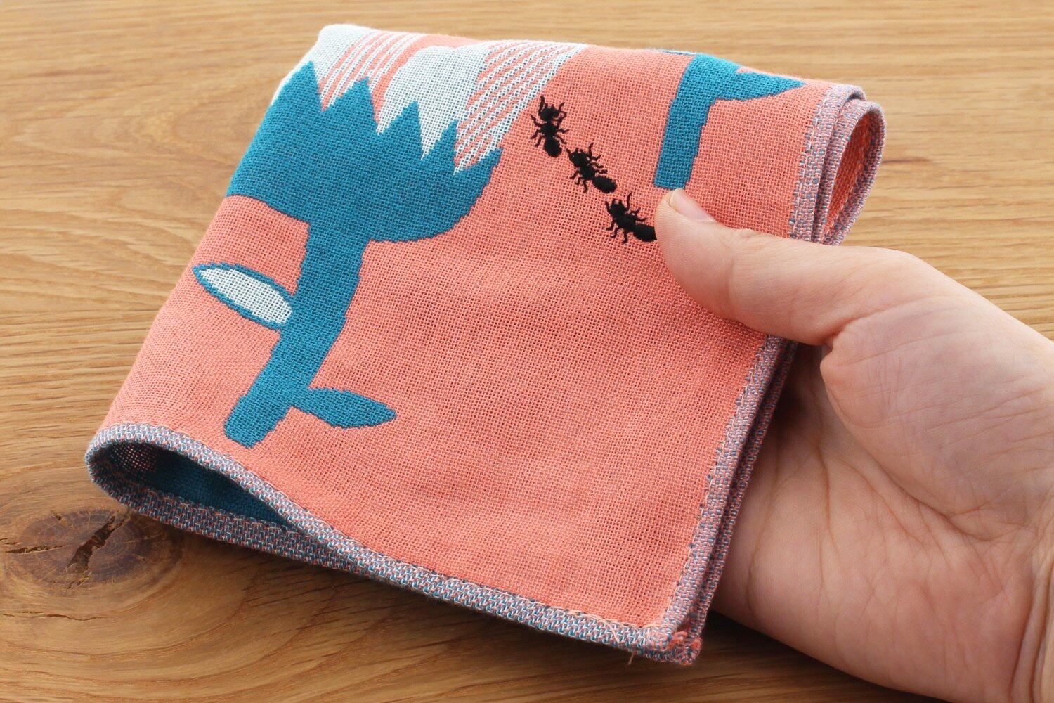 楠橋紋織(Kusubashi Mon Ori) morita MiW ガーゼハンカチ アリンコ サーモンピンク A-64795-86-SP 25×25cm
