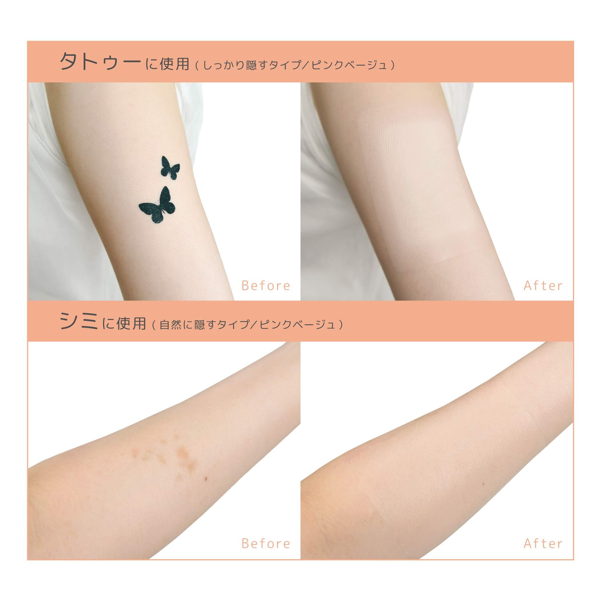 2つのタイプ:「自然に隠すタイプ」は素肌に近い見え方。「しっかり隠すタイプ」は濃いきず跡やタトゥーをしっかり隠すことができます