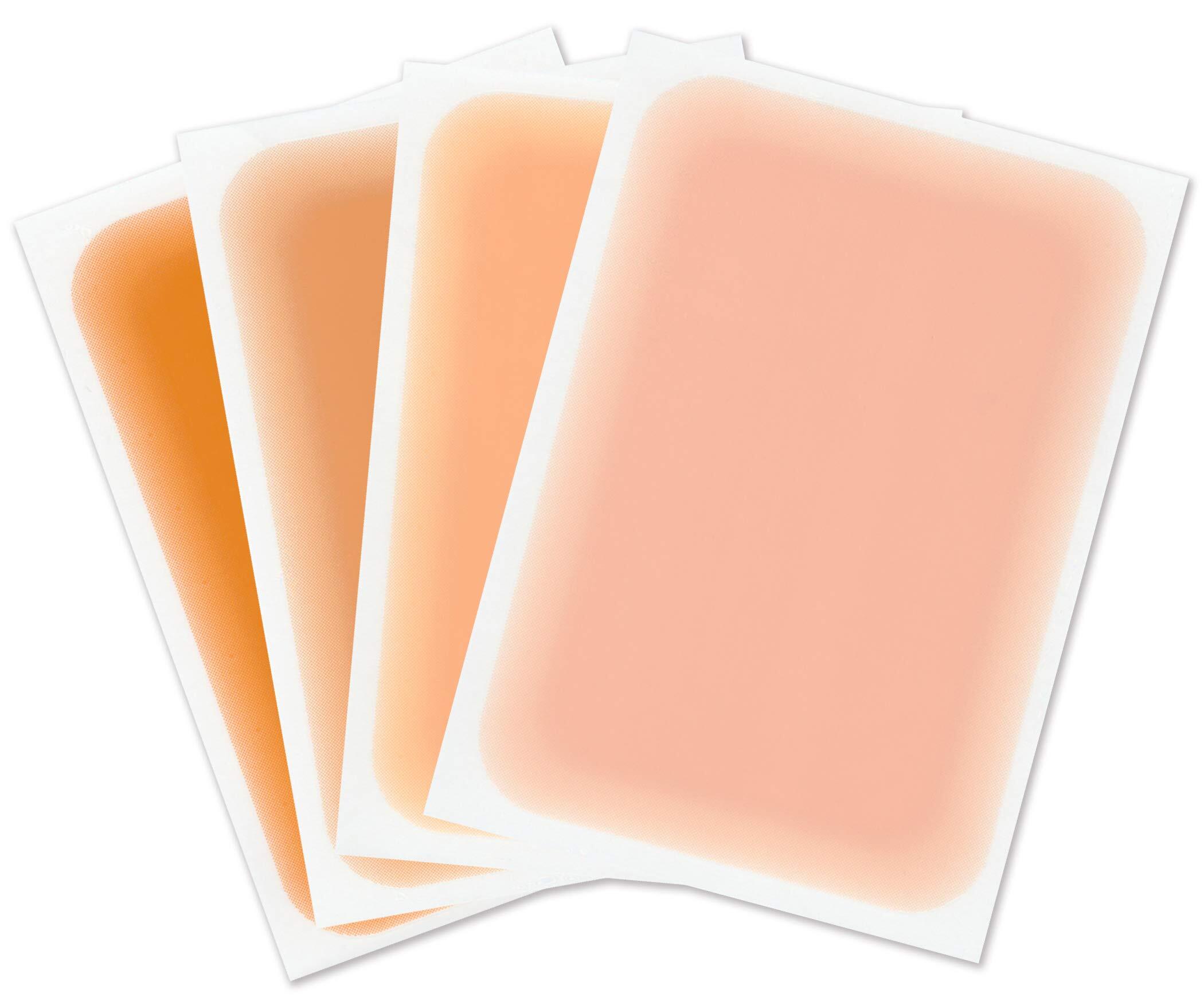 4つのサイズ:Sサイズ(指や足などの小さなタトゥーに最適)、Mサイズ(はがきの約半分サイズ。使いやすい大きさ)、Lサイズ(はがきサイズで、広範囲のタトゥーやきず跡もしっかりカバー)、LLサイズ(週刊誌の半分のサイズで、より大きめなタトゥーやきず跡もしっかりカバー)