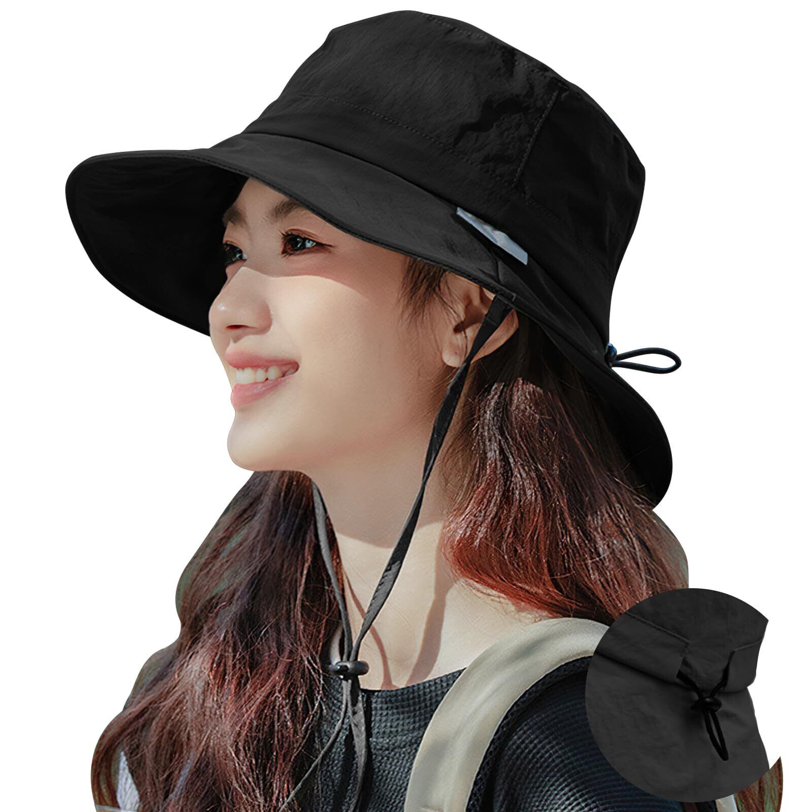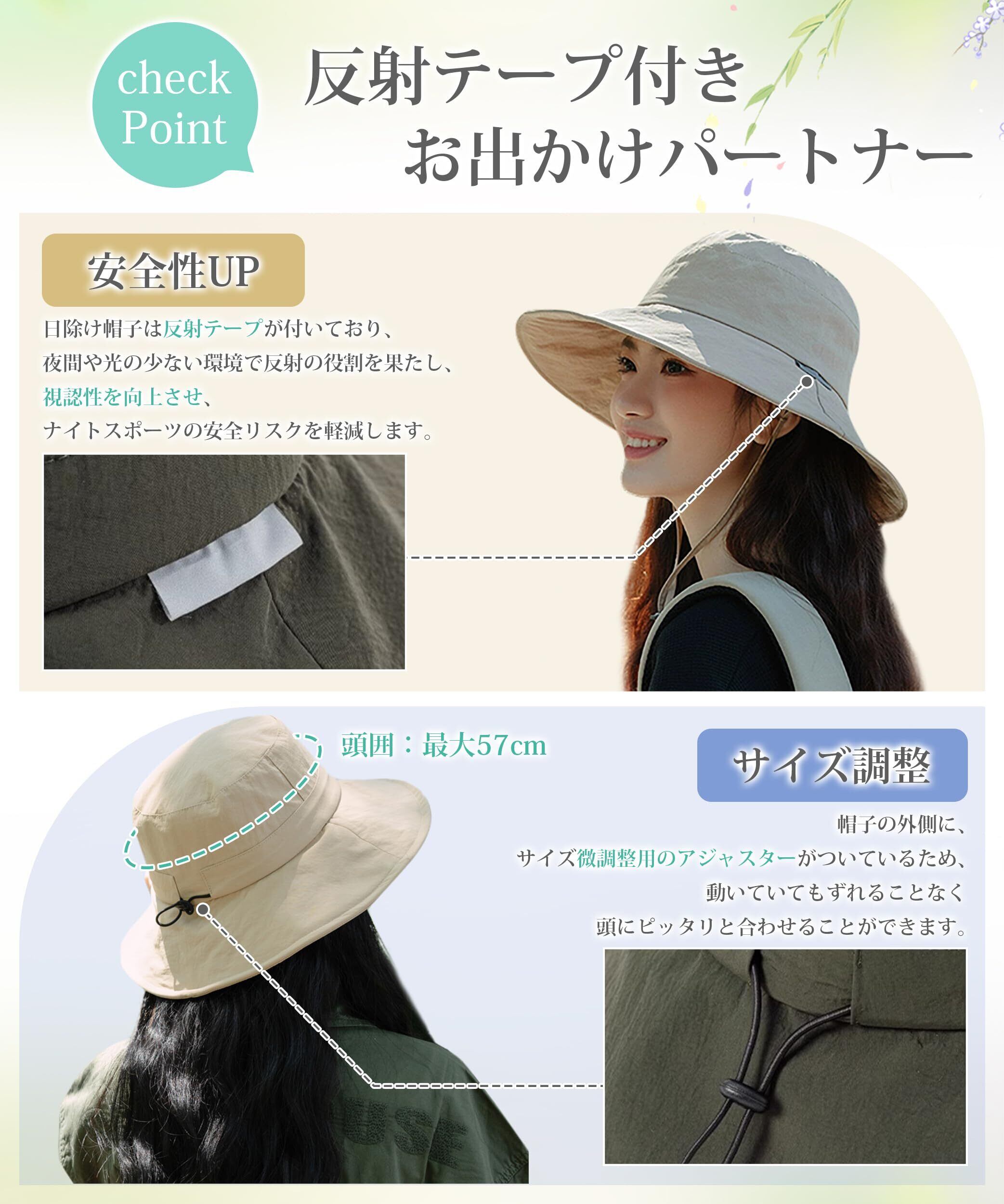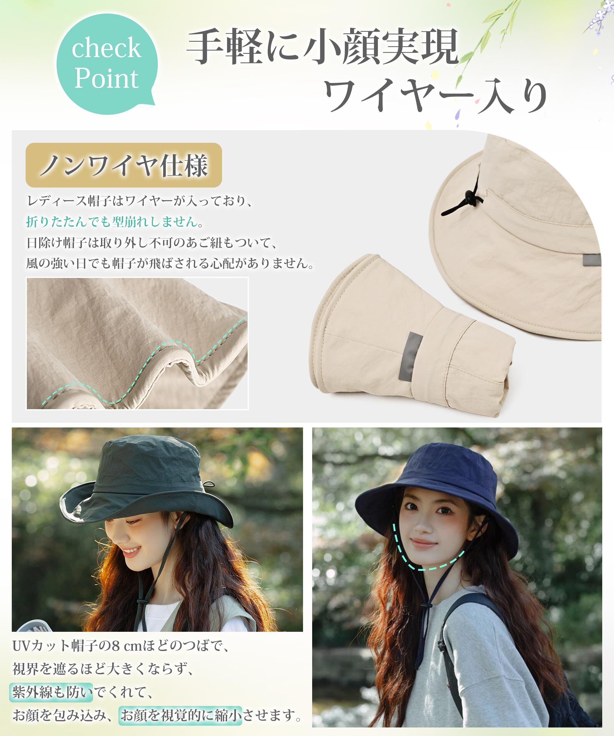 [MOWO] UVカット帽子 レディース 【超軽量涼しい】【サイズ調整可・UPF50+測定済み・撥水加工】 完全遮光 ワイヤー入り 紫外線対策 日焼け防止 通気 小顔 日除け帽子 自転車 登山 海辺 農作業 日除けハット