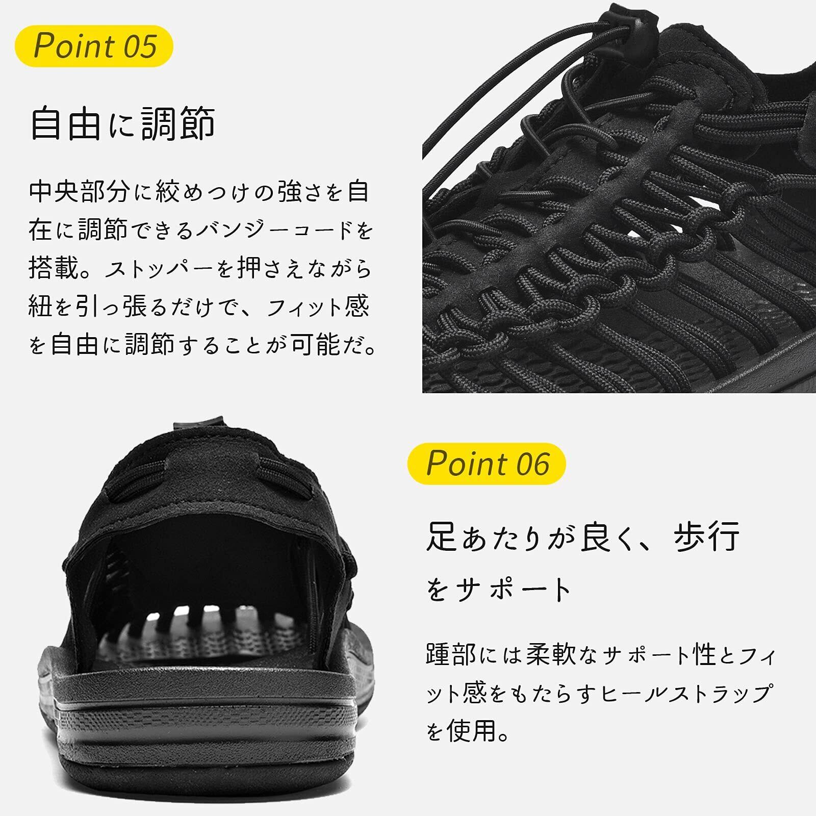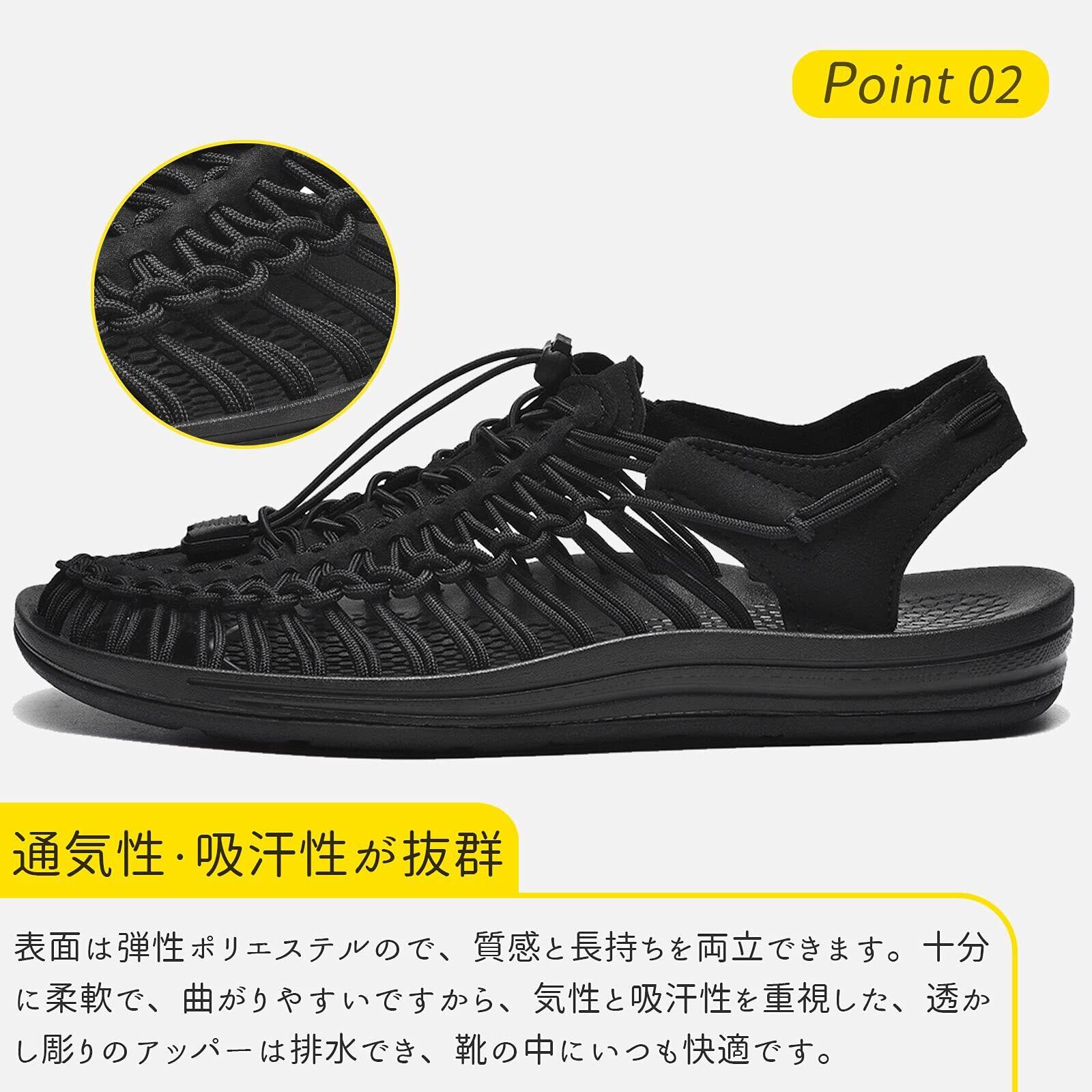 【通気性・吸汗性が抜群】表面は弾性ポリエステルので、質感と長持ちを両立できます。十分に柔軟で、曲がりやすいですから、気性と吸汗性を重視した、透かし彫りのアッパーは排水でき、靴の中にいつも快適です。涼しい着心地を感じられるようにしています。