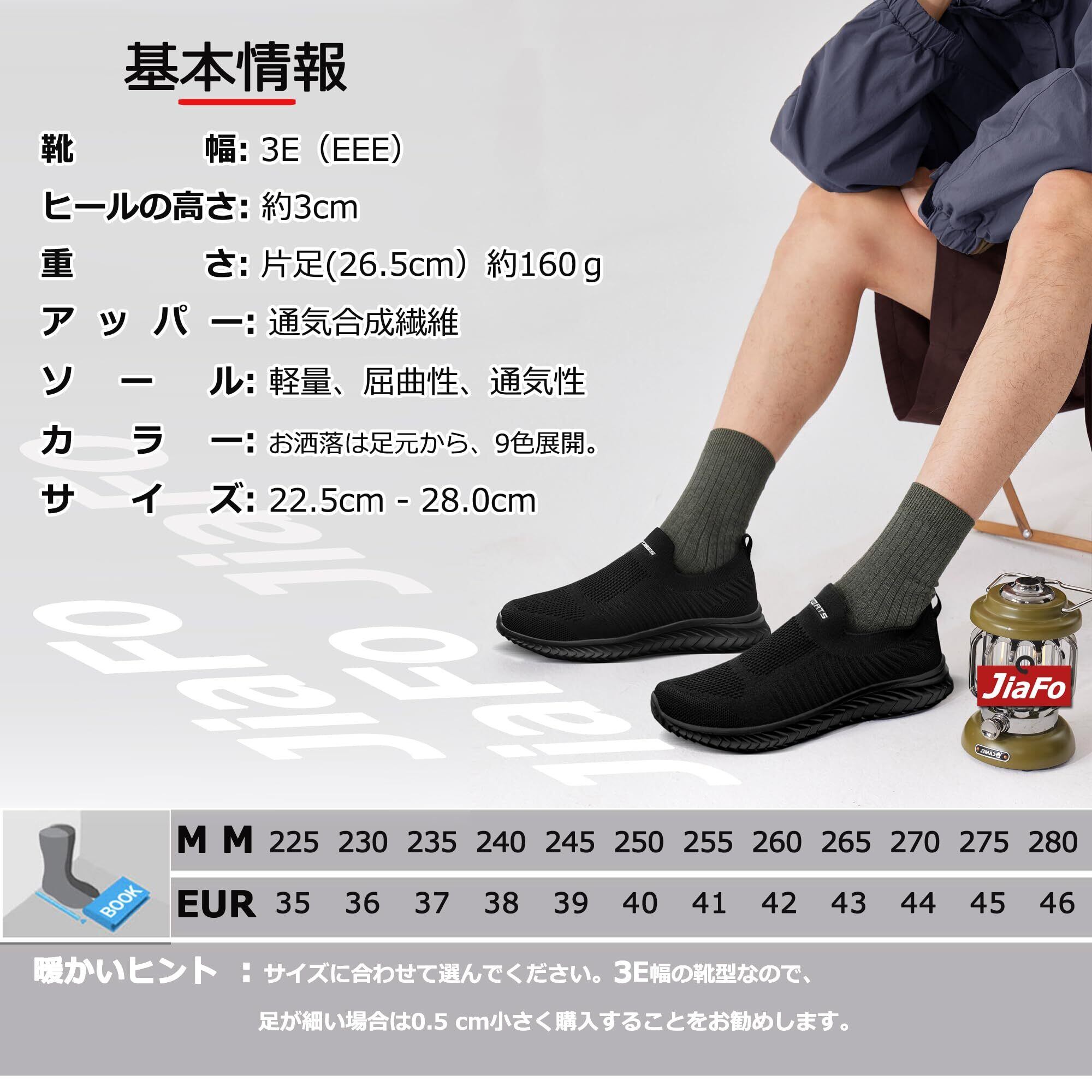 [JIAFO] スリッポン メンズ レディース スニーカー ウォーキングシューズ 幅広 紐なし 超軽量 大きいサイズ ランニングシューズ トレーニングシューズ 歩きやすい 滑り止 ナースシューズ 婦人靴 運動靴 通勤 男女兼用22.5cm~28cm