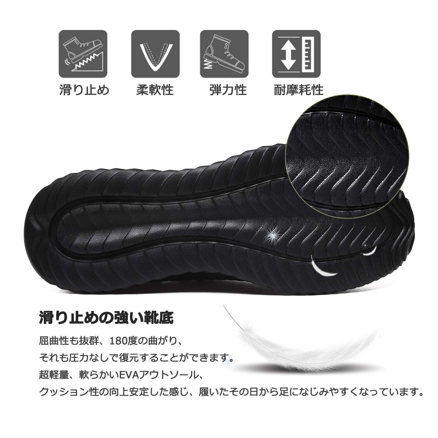 [屈曲性、滑り止め] 屈曲性が良いから、足に優しく歩きやすい。靴底はでこぼこで、地面との摩擦力が強くなり、ソールの寿命と機能にも長持ち.足をリラックスできるだけでなく、滑りにくい.滑り止めテクスチャデザインは雨の日にスライドするのは簡単ではありません。