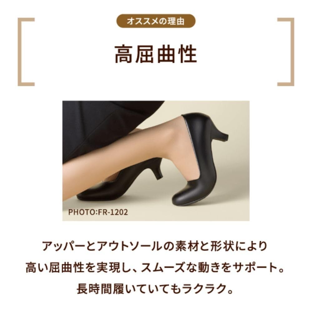 働く女性の味方。お仕事にぴったりな「fuwaraku(フワラク)」のベーシックパンプス。 直線的で指先がラクラク、知的な印象のスクエアトゥ。 安定感と指先のゆとりを両立し、長時間履いても疲れにくい快適仕様です。 幅広4E設計で、足幅が広めの方にもやさしいつくり。 \ fuwaraku 7つのポイント / 1. ふわふわクッションインソール 足裏全体をやさしく受け止める立体設計。かかと・土踏まず・前足部をやさしくサポート。 2. 高屈曲ソール スムーズな足運びを叶える柔軟な素材と設計。長時間の立ち仕事でも疲れにくい。 3. 表面やわらか素材&内側メッシュ 足あたりの良さと、ムレにくい通気性を両立。 4. 抗菌・防臭加工インソール 吸水・速乾性に優れた素材に抗菌防臭加工をプラス。いつでも清潔で快適。 5. 安心の防滑ソール 日本的で女性らしい桜の花、七宝柄、市松模様をモチーフにしたオリジナルデザインのアウトソールでしっかりグリップ。 6. 防水仕様(※完全防水ではありません) 突然の雨でも安心。合成皮革だから汚れもサッと拭き取りOK。 7.静音ヒール ヒールの先端にコツコツ音が響きにくい静音設計を採用。オフィスや会議室でも気にならず、歩行音を軽減します。 \ 豊富なサイズ展開で“ぴったり”が見つかる / 21.5cm~25.5cm 豊富な9サイズ展開。 「毎日履くからこそ、足にやさしい1足を。」 立ち仕事、営業、受付など、ビジネスシーンで頑張る女性の足元をしっかりサポートする、fuwarakuの自信作です。 ■ヒール高 21.5cm 約32mm 22.0cm 約32mm 22.5cm 約34mm 23.0cm 約34mm 23.5cm 約34mm 24.0cm 約36mm 24.5cm 約36mm 25.0cm 約38mm 25.5cm 約38mm 【フワラク】 「フワッと」「ラクな」履き心地で、働く女性を応援するブランド。 ベーシックな黒パンプスは、サイズ・幅・ヒール高・つま先形状から、あなたにぴったりの1足が選べる。ブーツなどのシリーズも展開。 ※価格改定により、旧価格表記のプライスタグがついた商品が発送される場合がございます。 #黒パンプス #ブラックパンプス #フォーマルパンプス #就職活動 #フレッシャーズ #卒園 #卒業 #入園 #入学式 #謝恩会 #ハレの日 #冠婚葬祭 #葬式