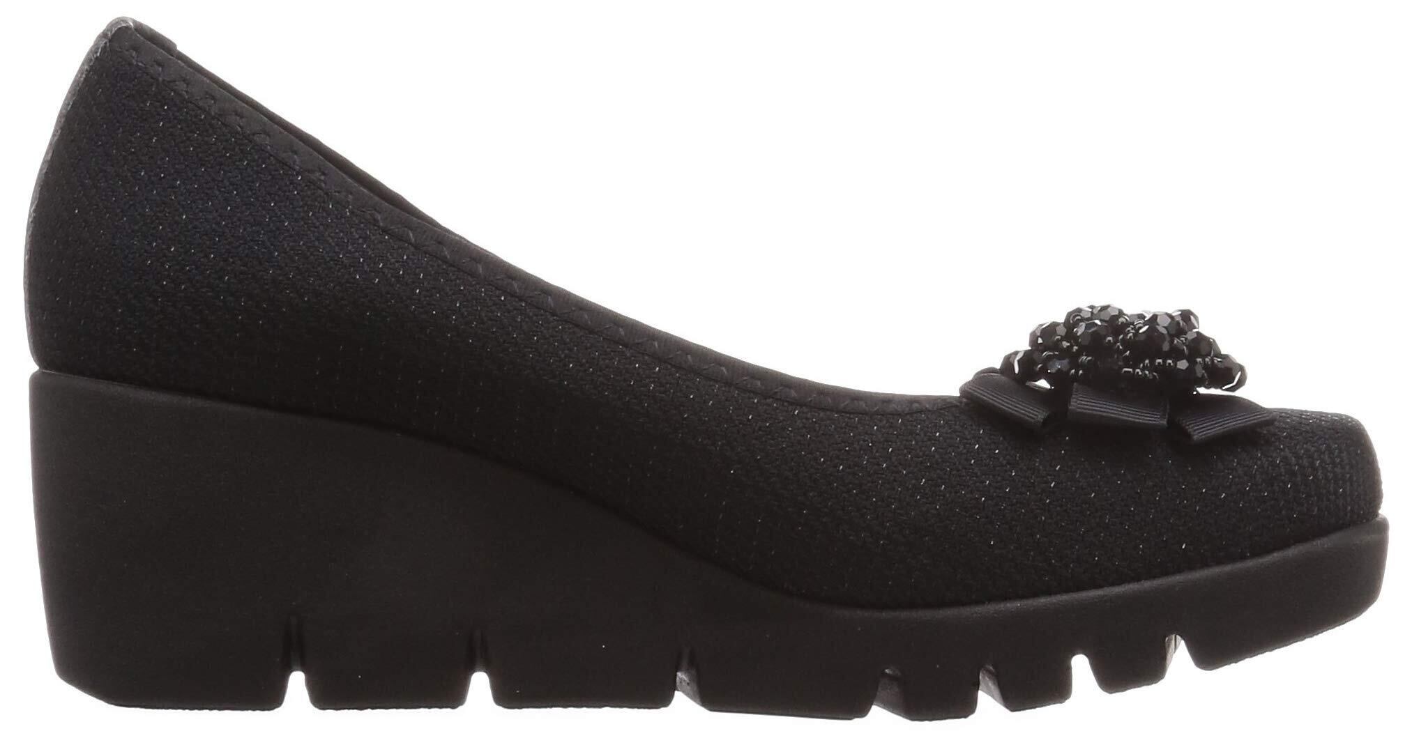 履きやすいカジュアルテイストのシューズが人気の「ファーストコンタクト」より、日本製のパンプスが登場。可愛いコサージュデザイン。柔らかい素材が足に優しく、安定感のあるウエッジソールが快適な歩行をサポート。特殊なウエッジソールにより屈曲性が良く、見た目もスッキリ。アッパーには合成皮革を使用しているのでお手入れが簡単で、気負いなく履けるのがうれしい。かかとをしっかり支えてくれるウエッジスタイルなので、高さの割に歩きやすさを感じられそう。インソールにまでこだわり、吸汗・放湿・抗菌・消臭で足にムレ感を与えにくい特徴があります。トップに厚みをもたせたプラットフォームタイプなので、脚長効果も期待できます。普段の外出はもちろん、通勤などさまざまなシーンで活躍してくれそう。全体を落ち着いたデザインでまとめており、コーディネートに取り入れやすいのも魅力です。デザインと快適さを兼ね備えた、「ファーストコンタクト」のパンプスです。