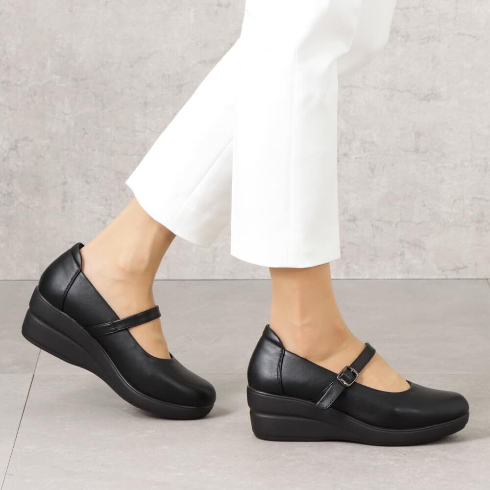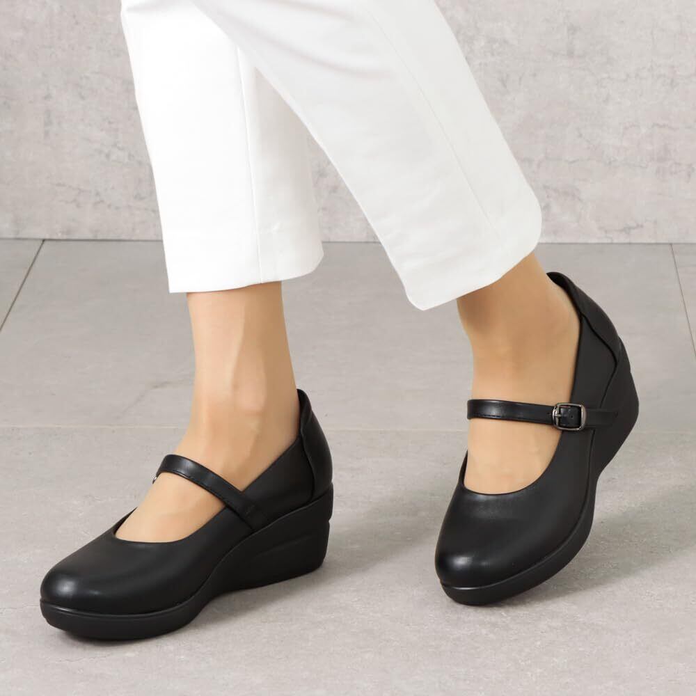 [フワラク] ウェッジ 幅広 3E 防水 ストラップウェッジパンプス <6.0cmヒール> 【21.5cm~25.5cm】 FR-4003 レディース