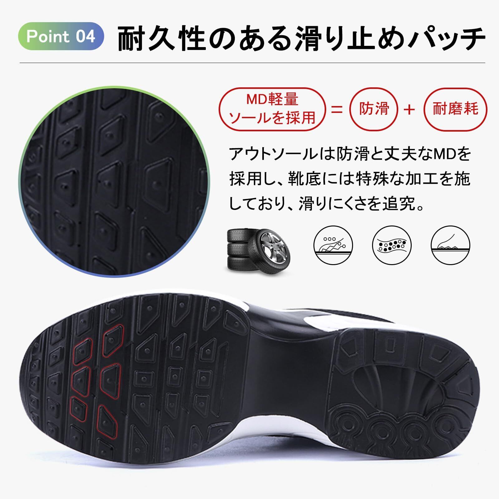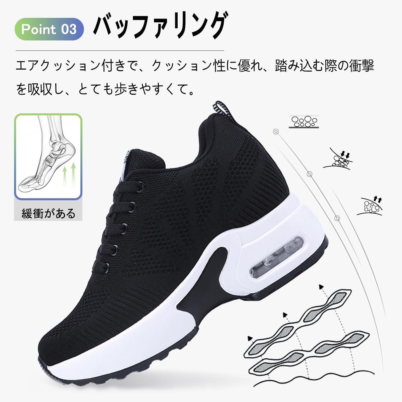 【バッファリング】エアクッション付きで、クッション性に優れ、踏み込む際の衝撃を吸収し、とても歩きやすくて。靴底には特殊な加工を施しており、滑りにくて耐磨耗性が抜群。