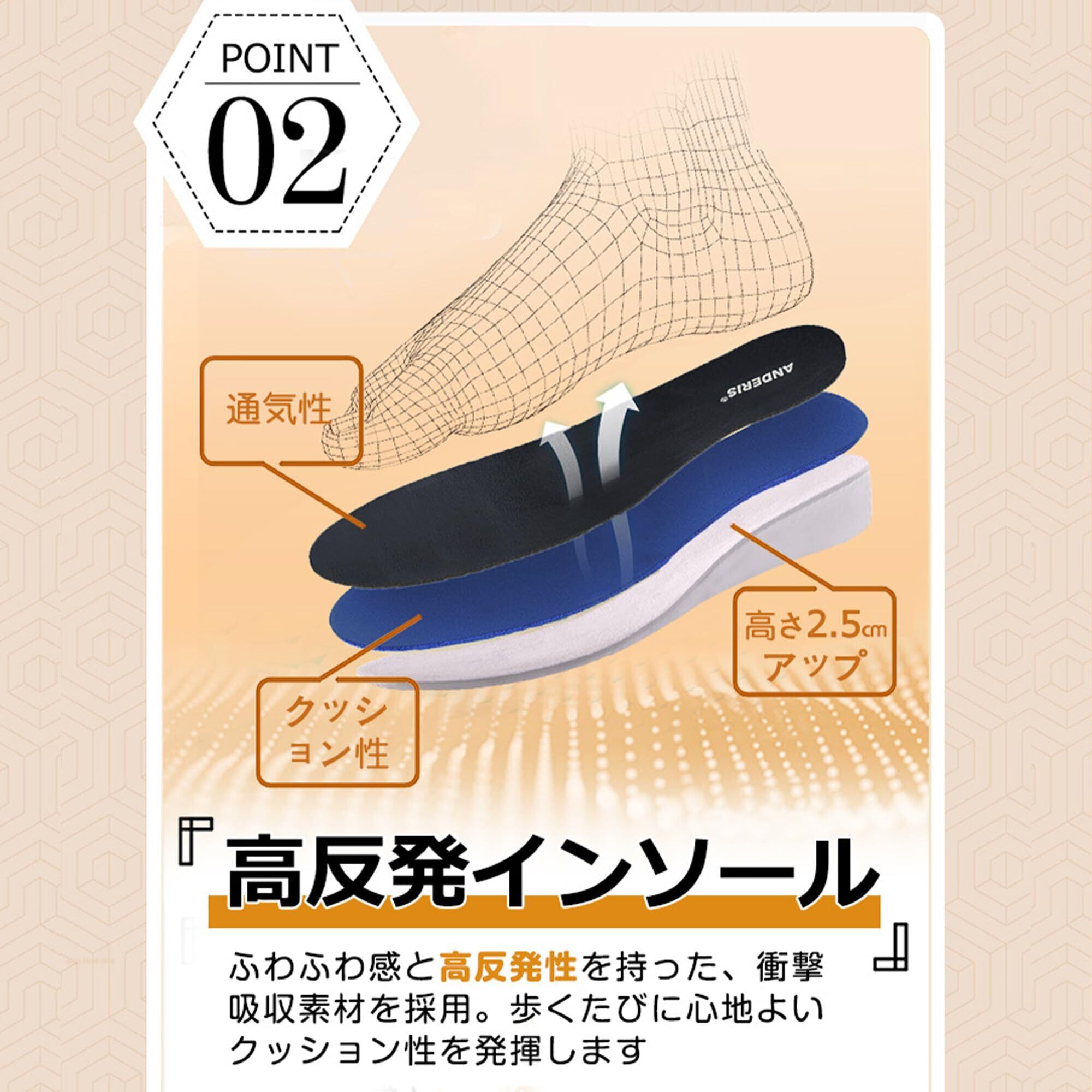 【滑りにくい】靴底は高強度で厚い弾性ゴム素材を採用し、トラクションと耐久性が強化されます。日常の通勤通学で安全に歩くことができます