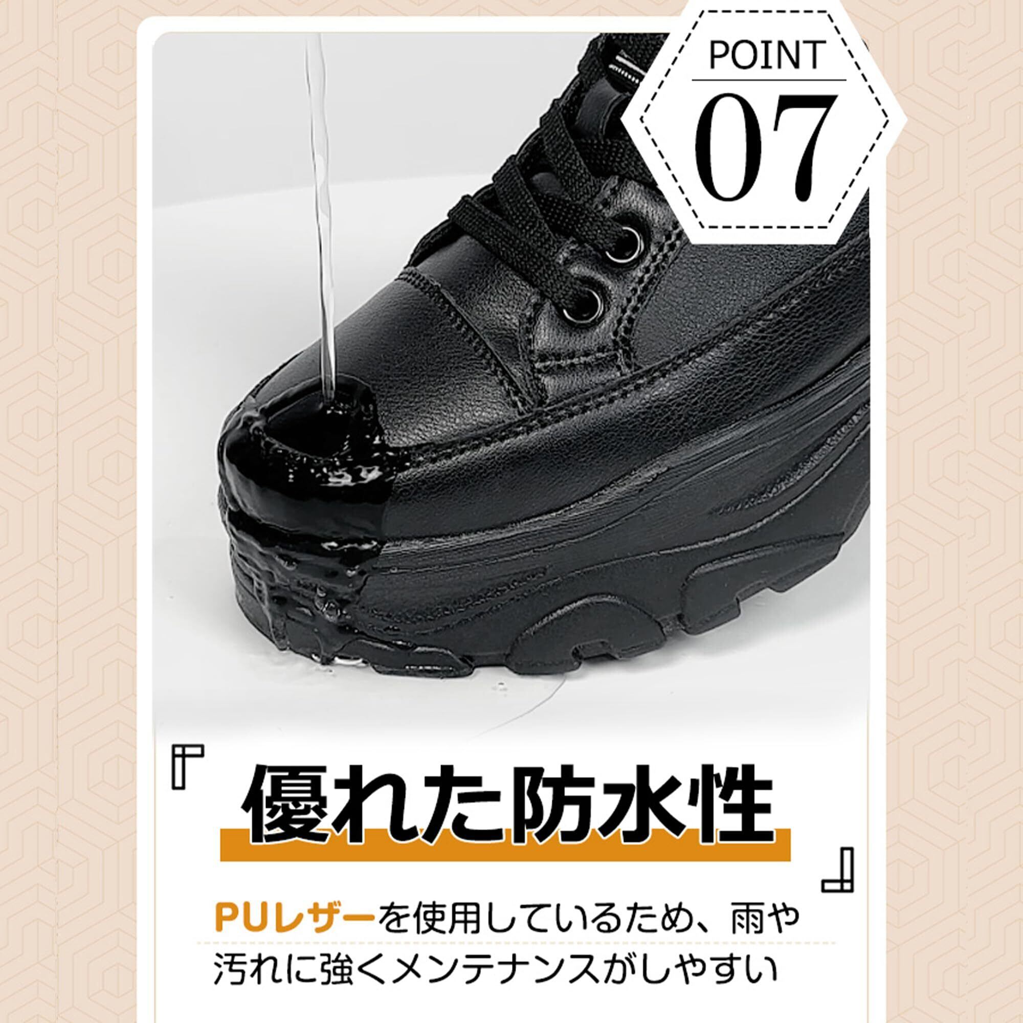 【耐久性のある素材】: 高品質な合皮表地と高強度ゴムソールを使用し、長く愛用いただける耐久性を実現しました。
