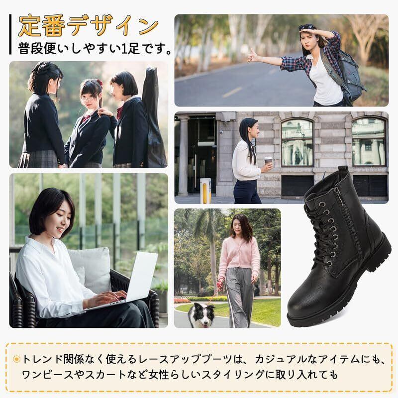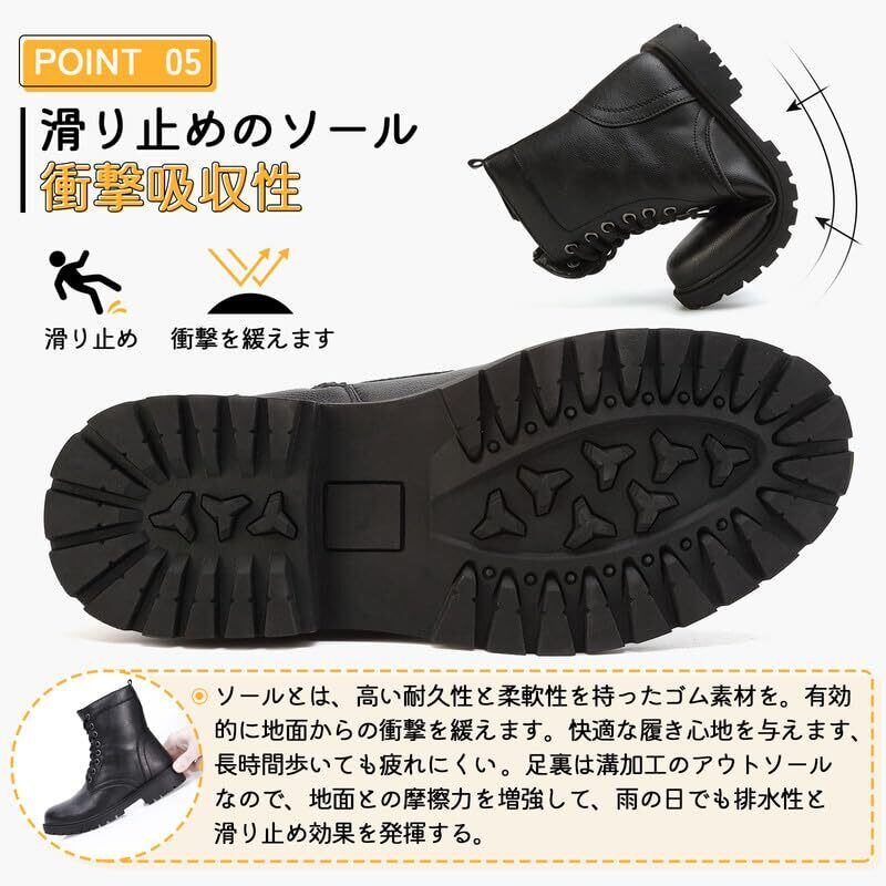 【2022最新】[todaysunny] ブーツ レディース サイドジップ ショートブーツ 厚底 ブーツ エンジニアブーツ 編み上げブーツ ハイカット 8ホールシューズ 秋 冬用 ワークブーツ 革靴 防水 黒 大きいサイズ 歩きやすい boots women | 無意味ステッカー