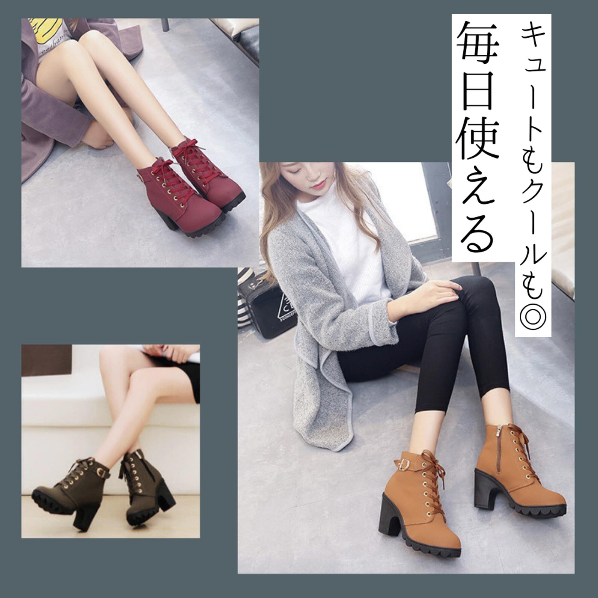 【特徴】サイドジップ: 脱ぎ履きが楽々!忙しい朝にもサッと履けます。 レースアップ: ホールド感を調整でき、足にぴったりフィットします。 7cmヒール: 約7cmのヒールで、脚長効果抜群!安定感もあり、歩きやすいです。 美脚効果: 脚を長く見せ、スタイルアップ効果が期待できます。