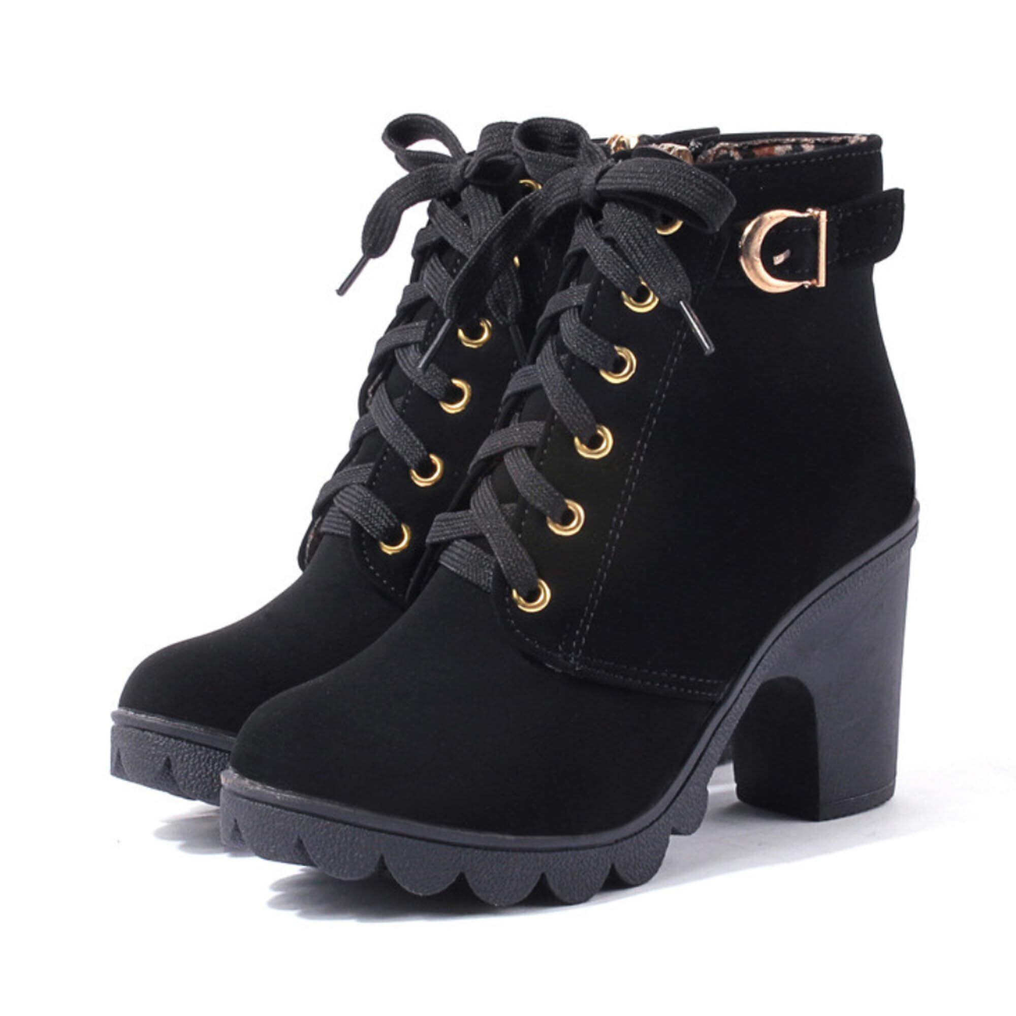 [ALVEIN] ショートブーツ ブーティ ショート サイドジップ 厚底 レディース ハイカット ハイヒール 歩きやすい 軽量 カジュアル 7cm