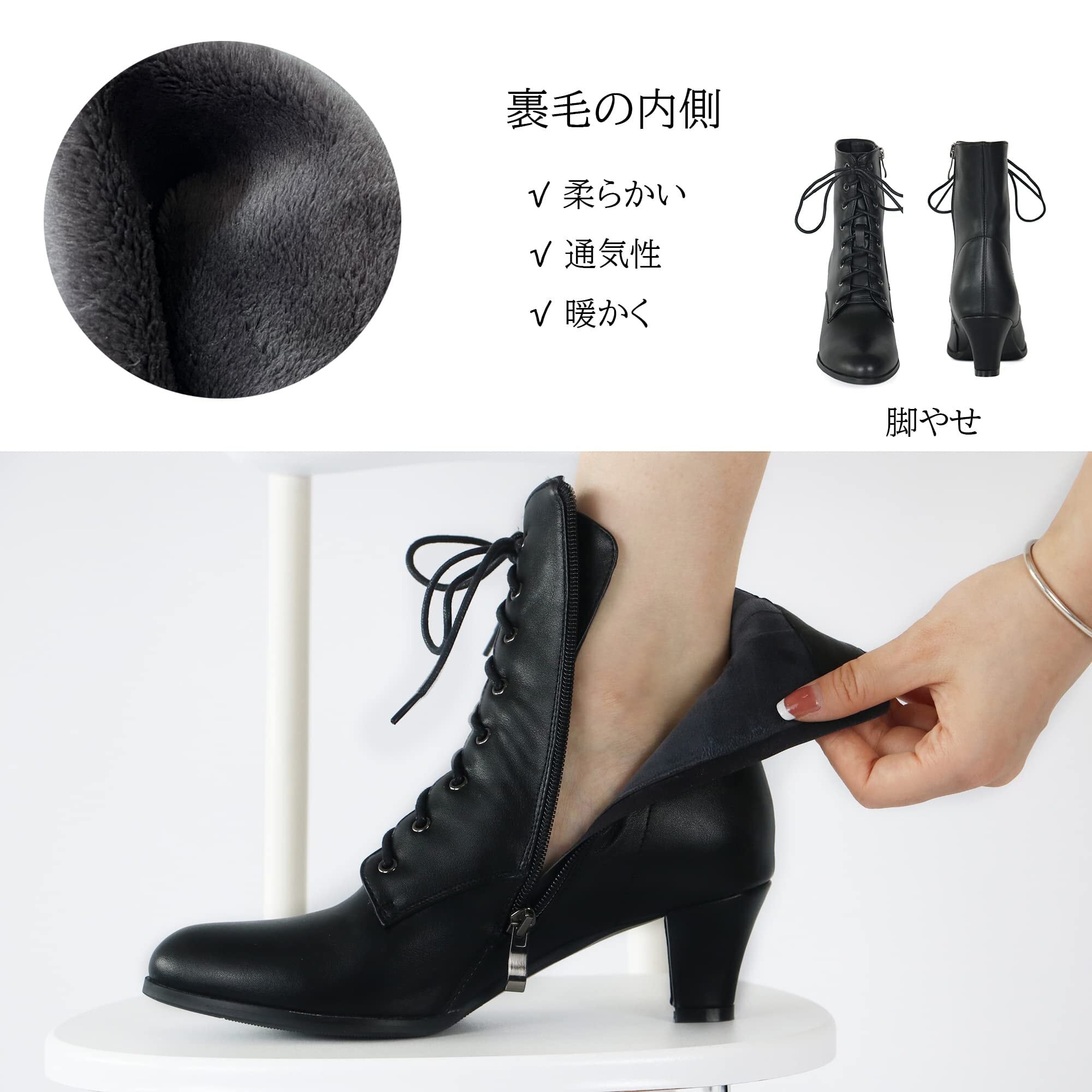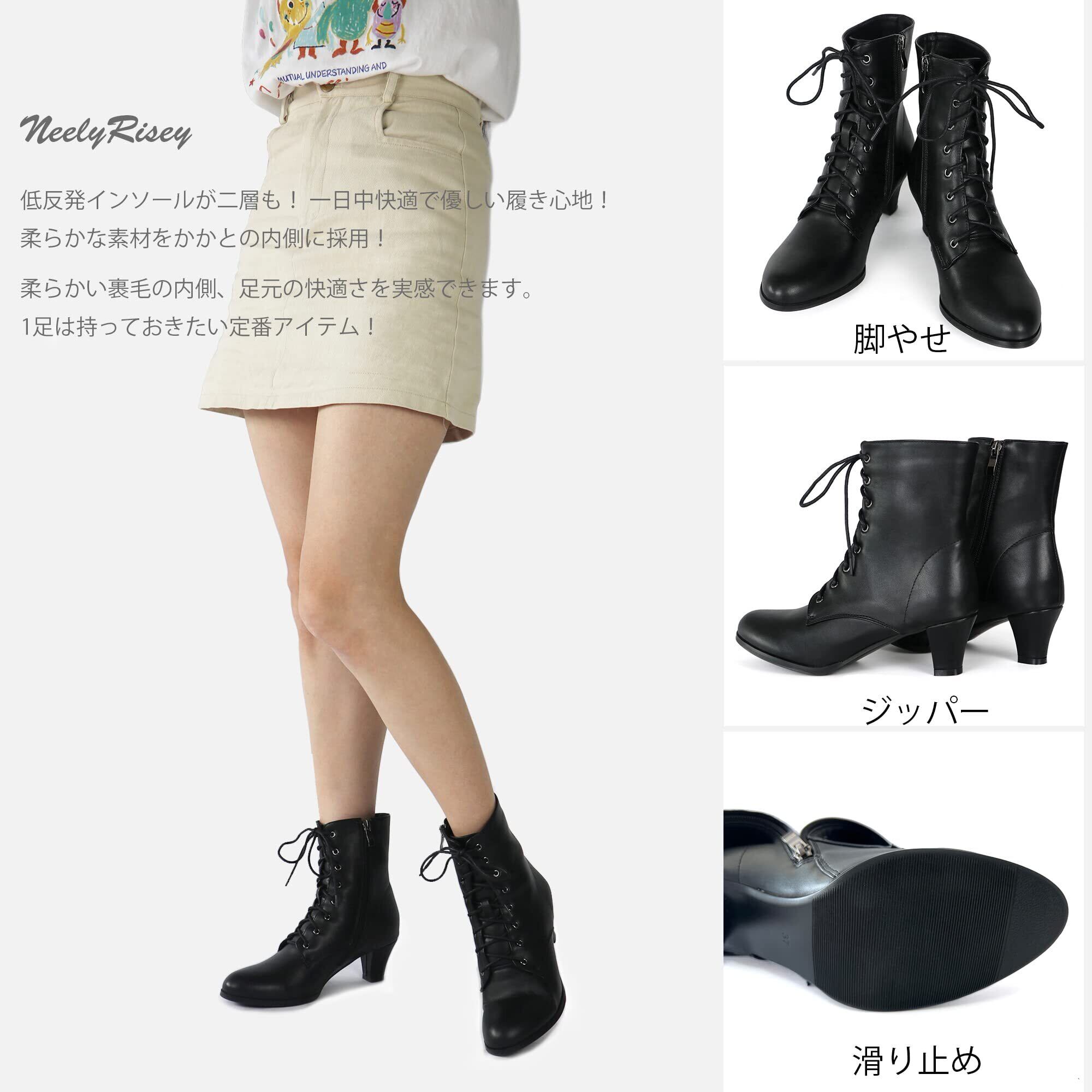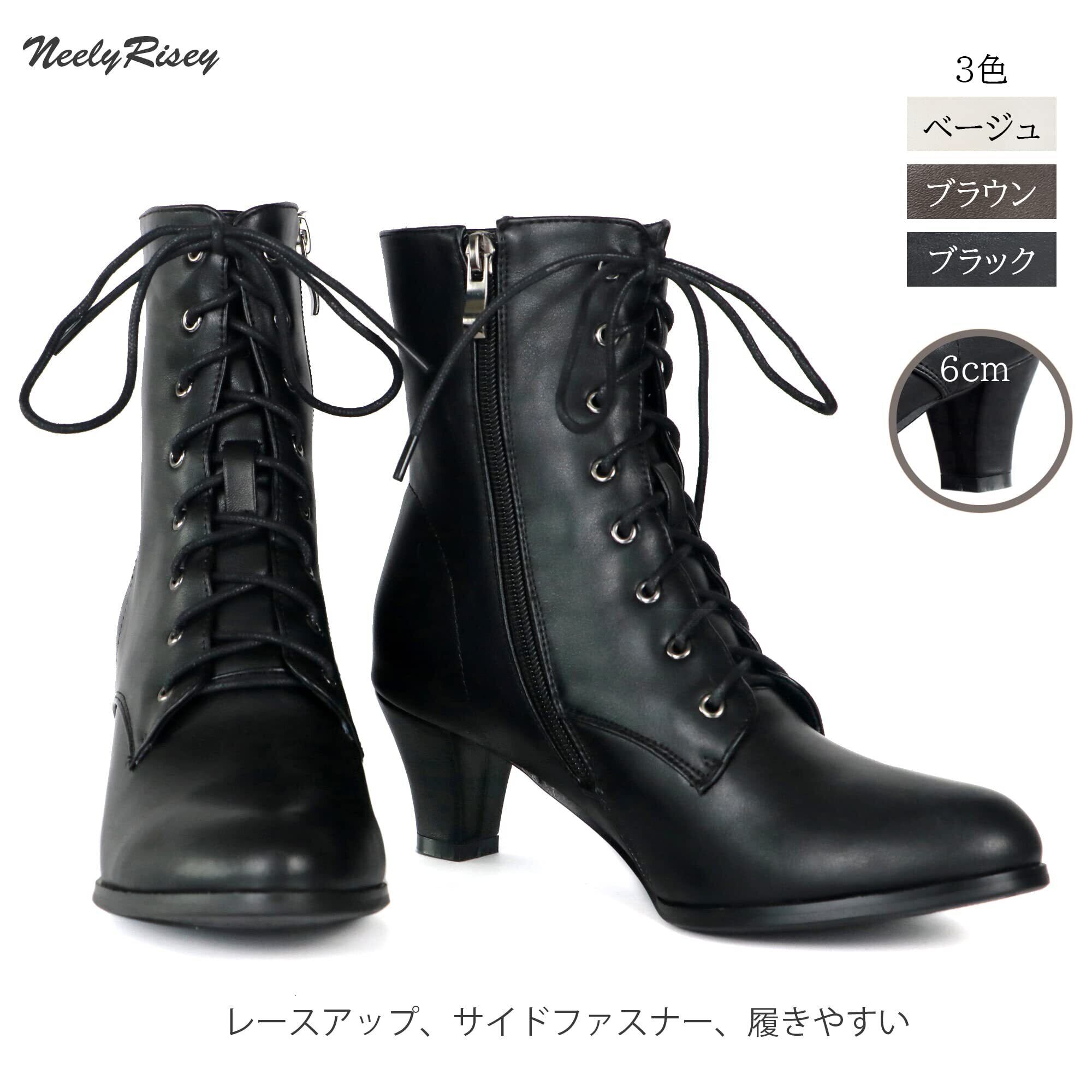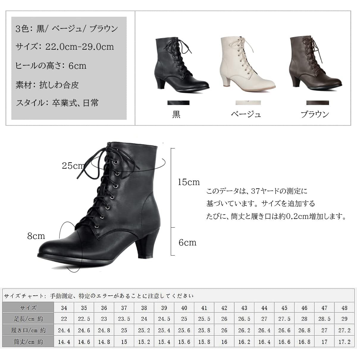 [NeelyRisey] 編み上げ 袴用 ショートブーツ ジッパー レディース 卒業式靴 ヒール6CM 22.0-29.0CM 黒/ベージュ/茶色