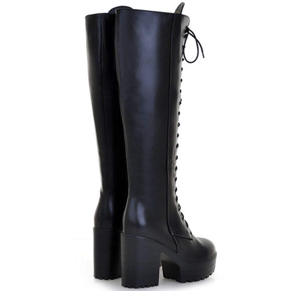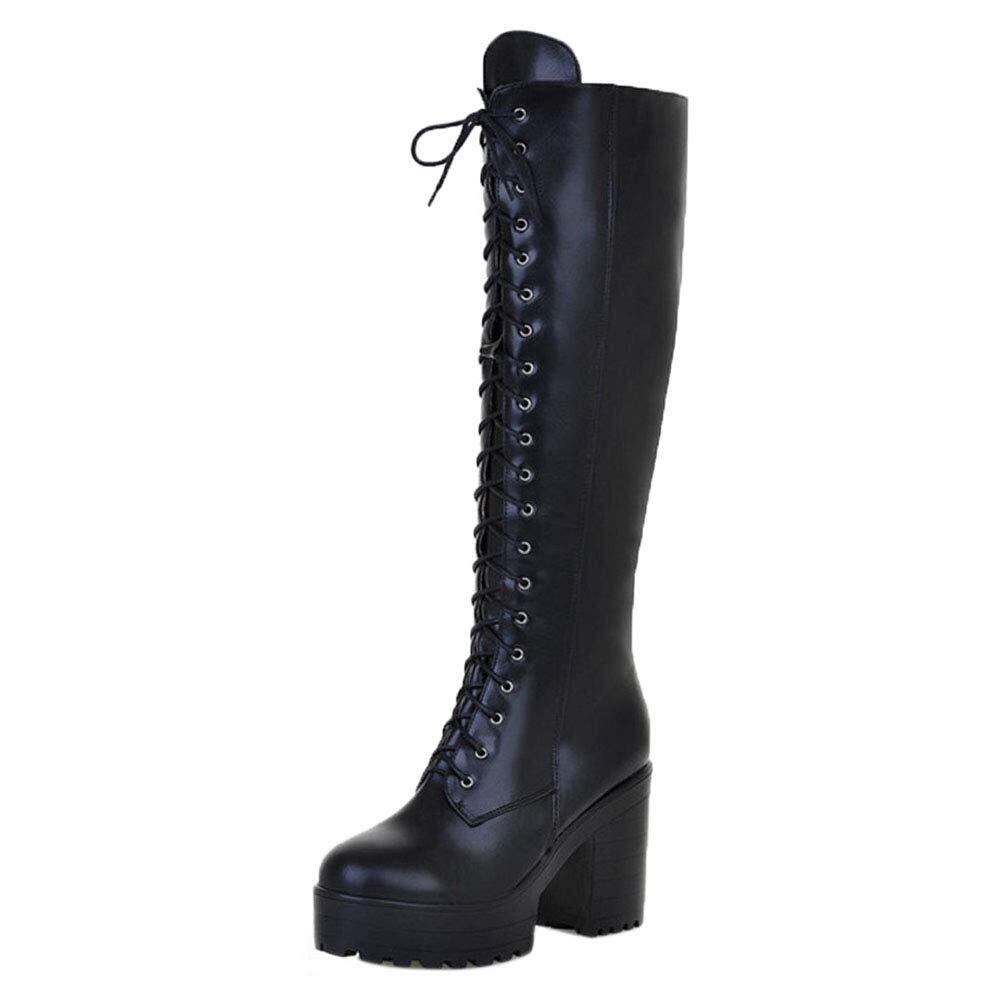 [AicciAizzi] レディース 厚底 編み上げブーツ ハイヒール 膝丈 サイドジップ