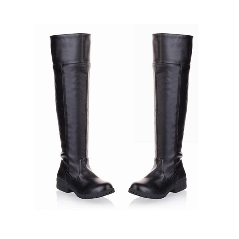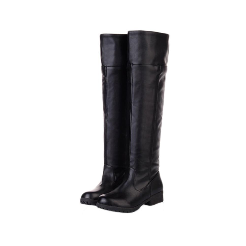[Fashion maker] ブーツ レディース ロングブーツ ロング丈 ブーツ ローヒール 美脚 ブーツ 合皮 通学 美脚 pu 太ヒール ハイヒール カジュアルシューズ ブラウン 黒