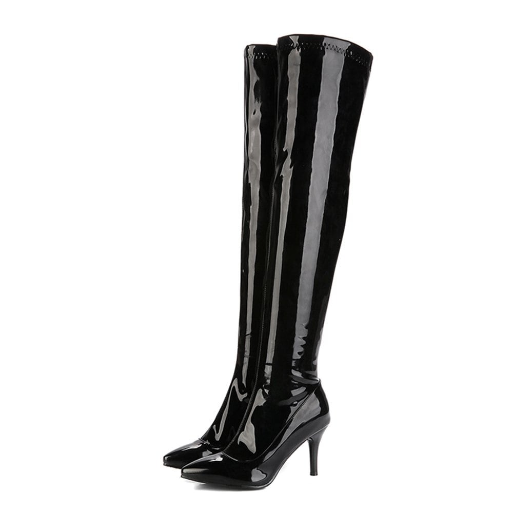 [COOLCEPT] レディース セクシー ニーハイ ブーツ ピンヒール 防風 サイハイブーツ 大きいサイズ
