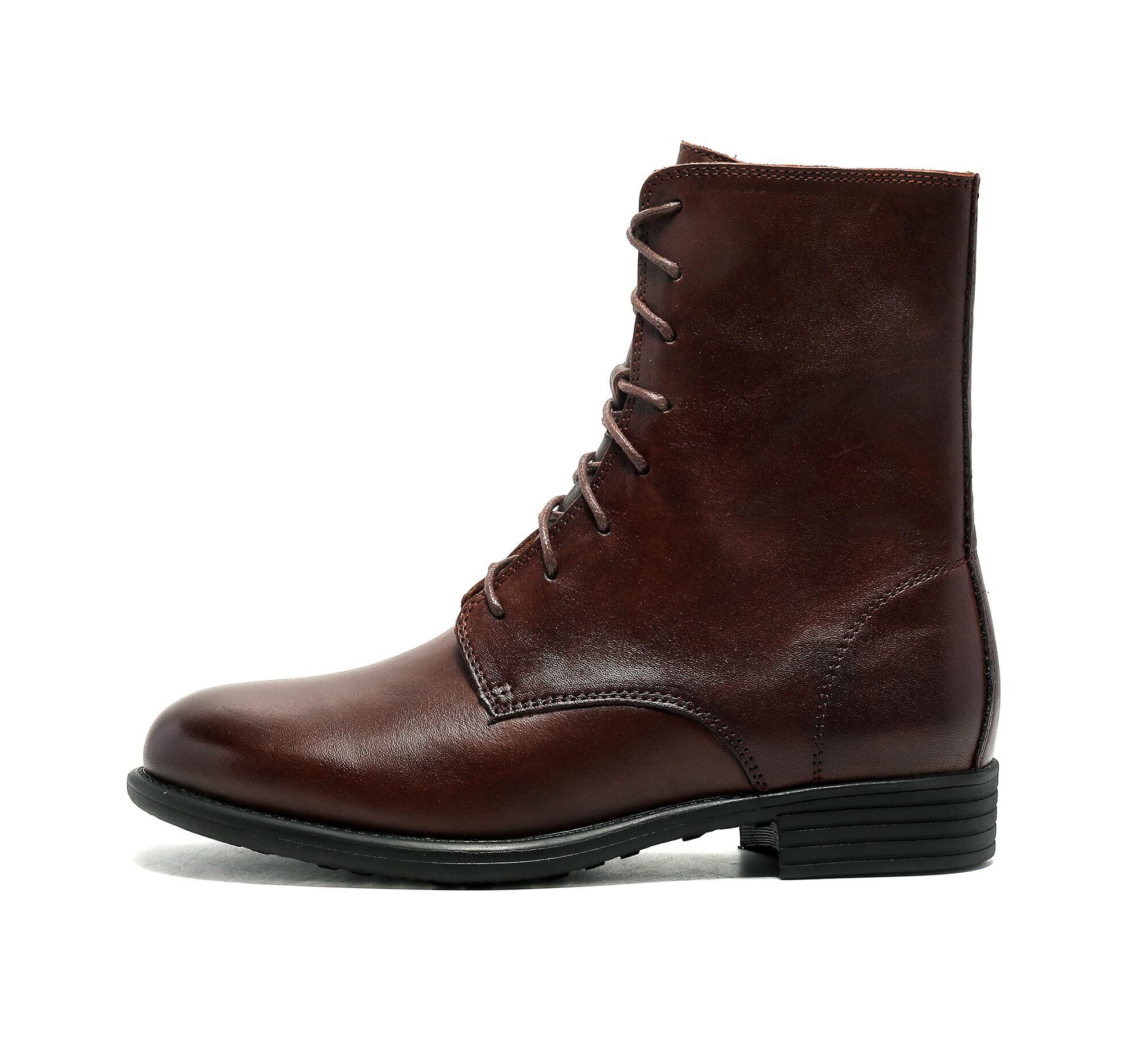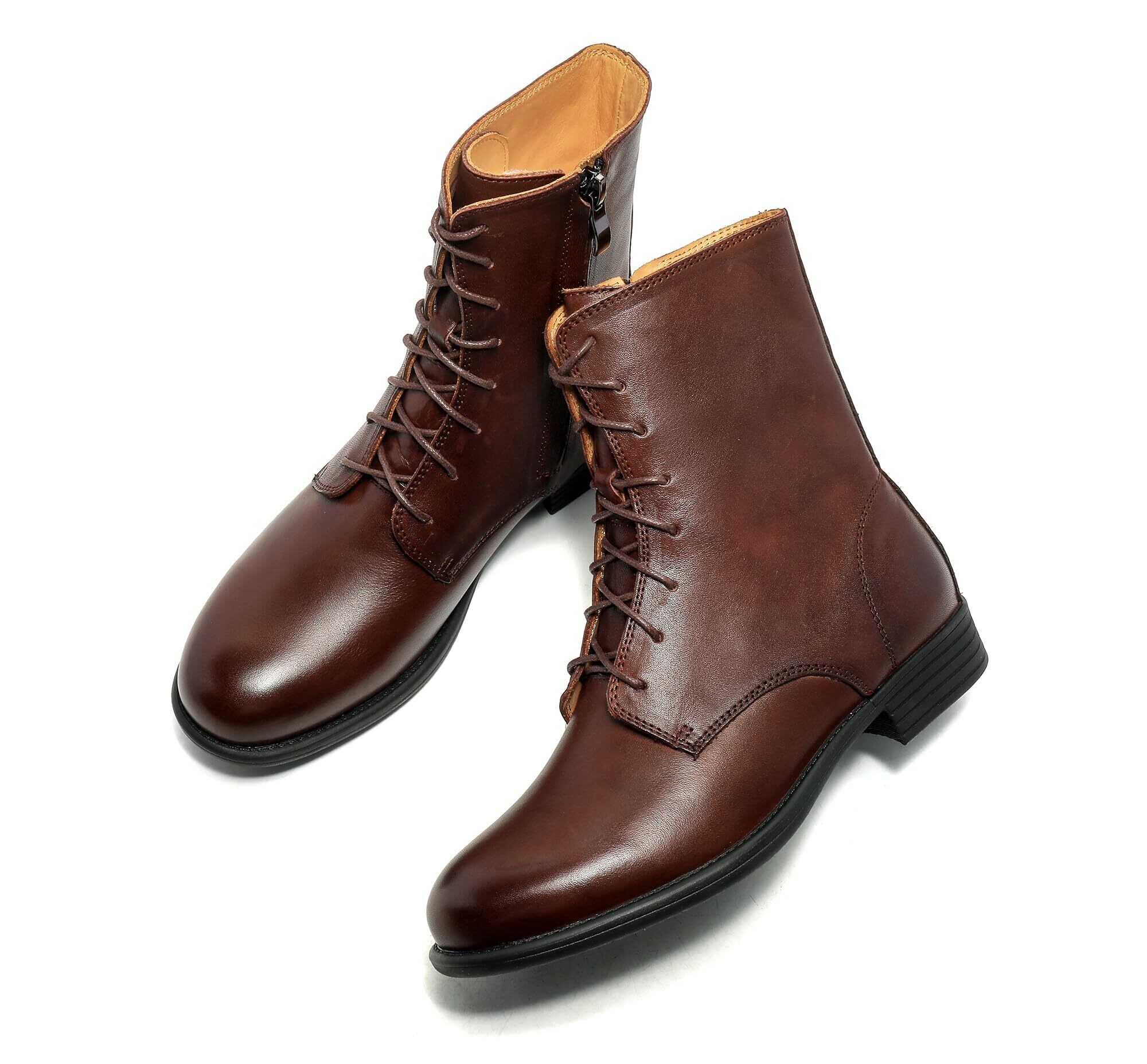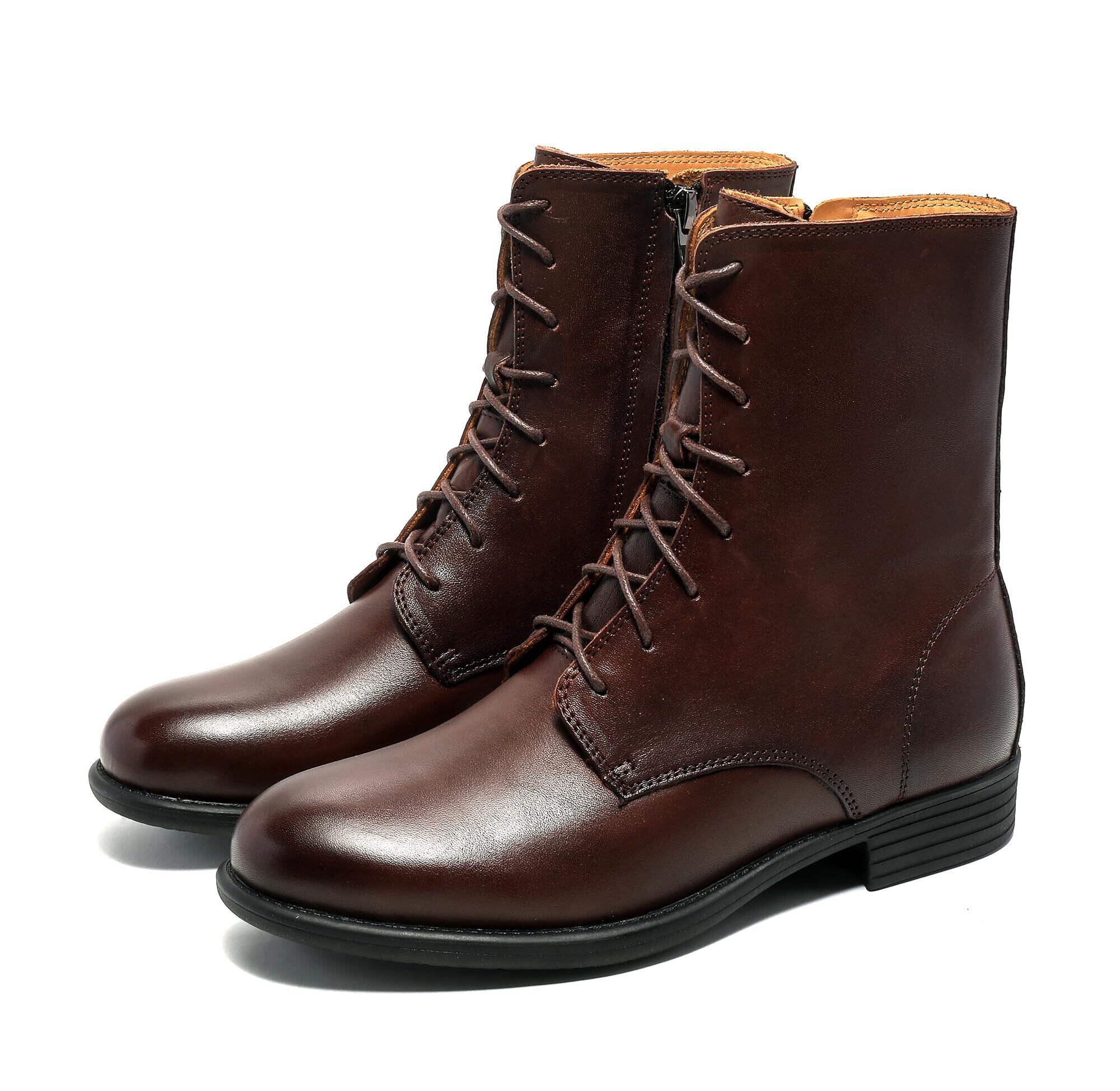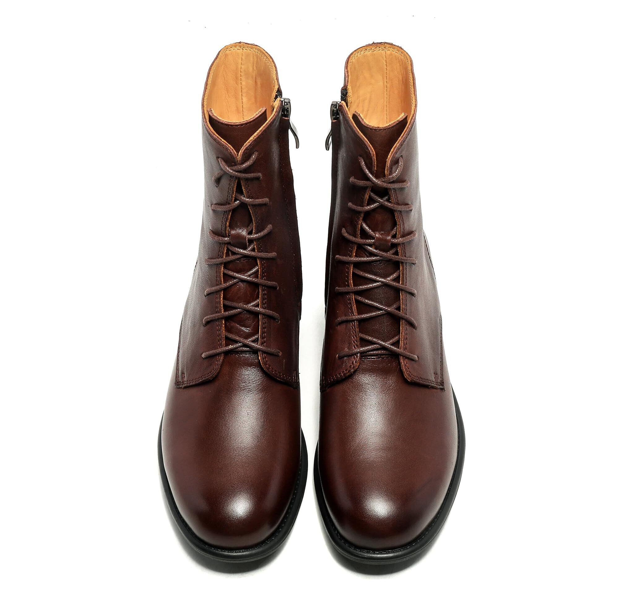 [ZUYEE] (ズイェ) レディース レースアップブーツ 本革 フラット サイドジップ 編み上げブーツ ショートブーツ