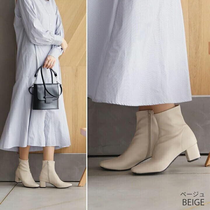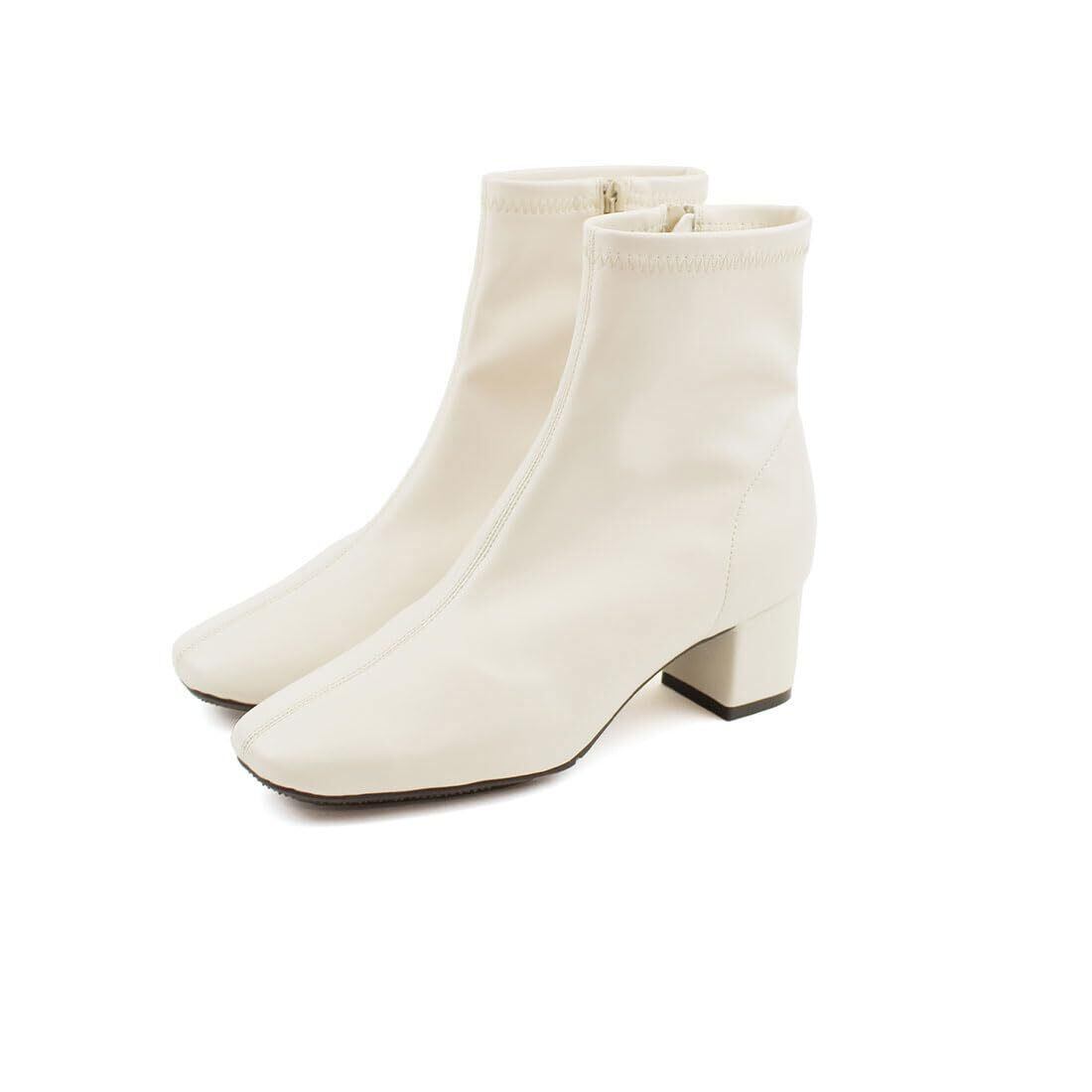 [Vivian] 5.5cm ヒール スクエアトゥ ストレッチ ショートブーツ V6270AW