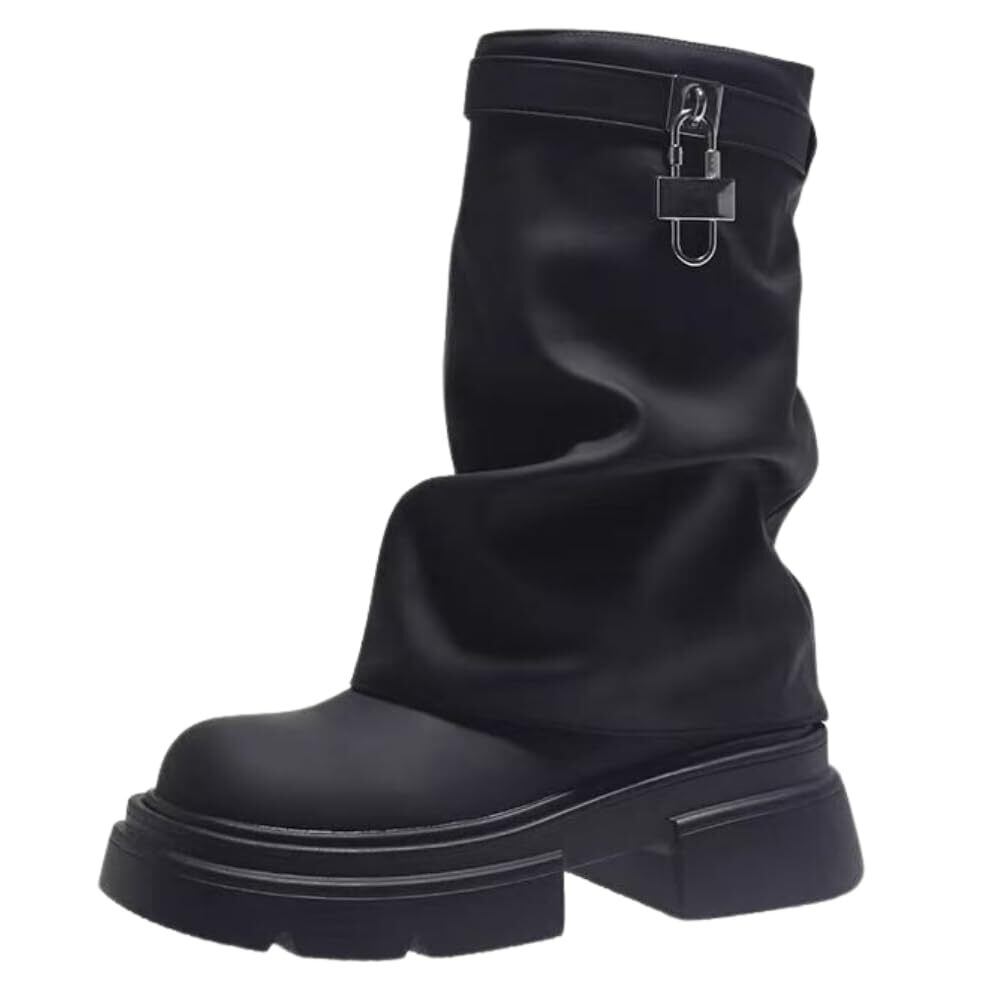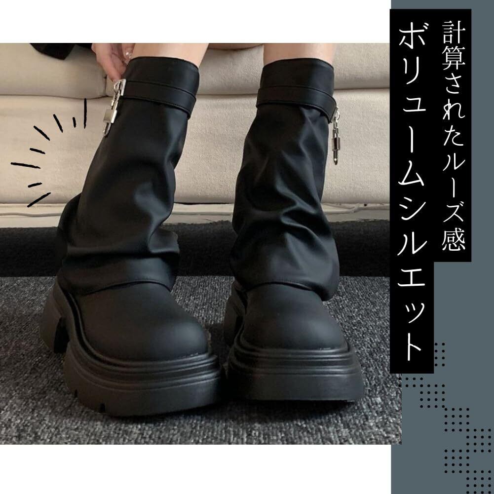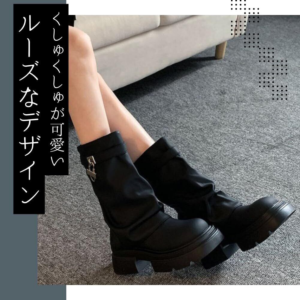 [ALVEIN] レディース シャーリング ロングブーツ ミドル 厚底 ルーズ くしゅくしゅ レッグウォーマー ギャル ラウンドトゥ y2k エンジニア