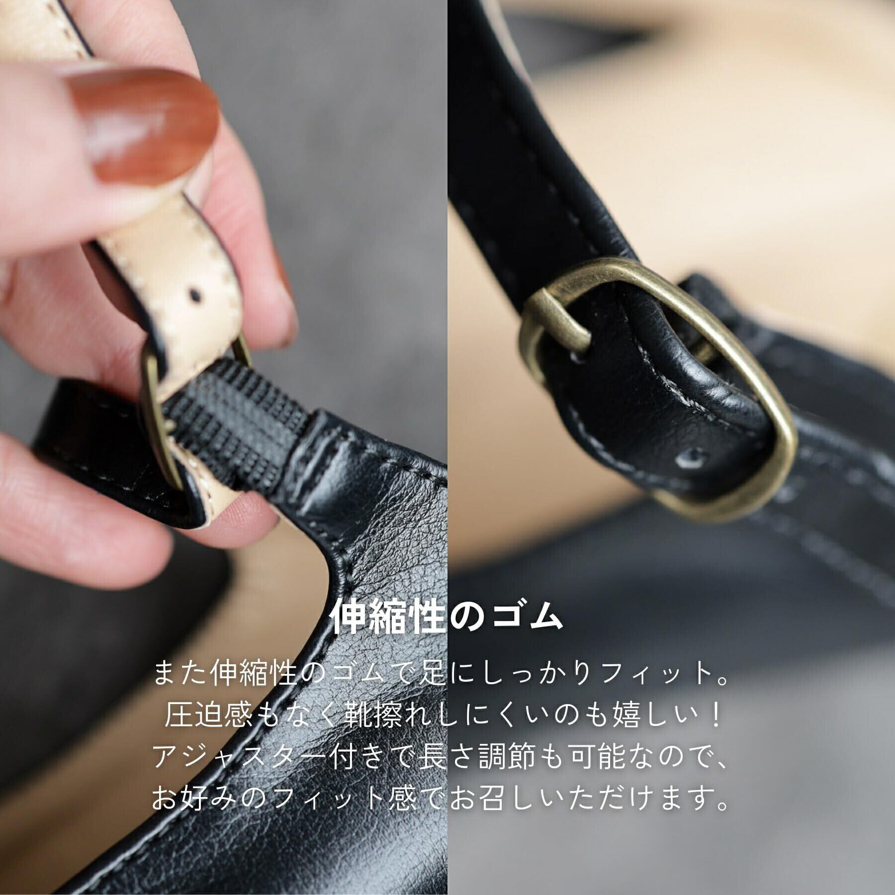 【脱げにくい快適な履き心地】甲部分のストラップが足をしっかりサポートし、ミュール特有のパカパカ感を軽減。伸縮性のあるゴムストラップでフィット感抜群&靴擦れしにくい設計。アジャスター付きで、自分好みのフィット感に調整可能。