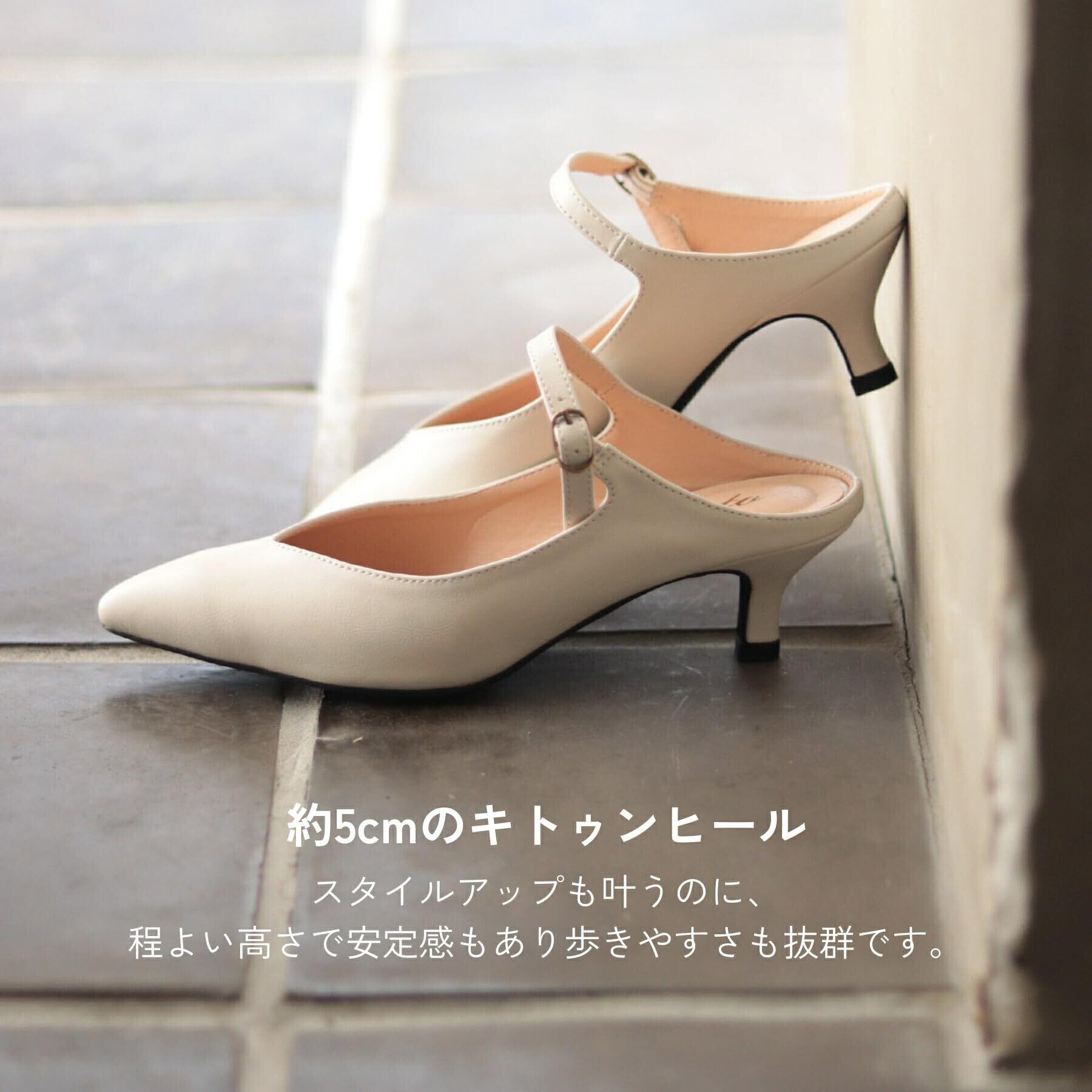 履きやすい 歩きやすい 靴づれしにくい 脱げにくい 低反発 クッション 甲ストラップ ゴムストラップ 削れにくいかかとゴム 5cmヒール ポインテッドトゥ メリージェーン 甲浅 Vカット ミュール サンダル レディース dks3400
