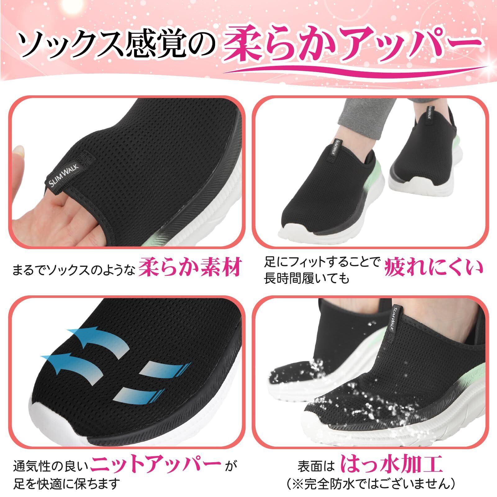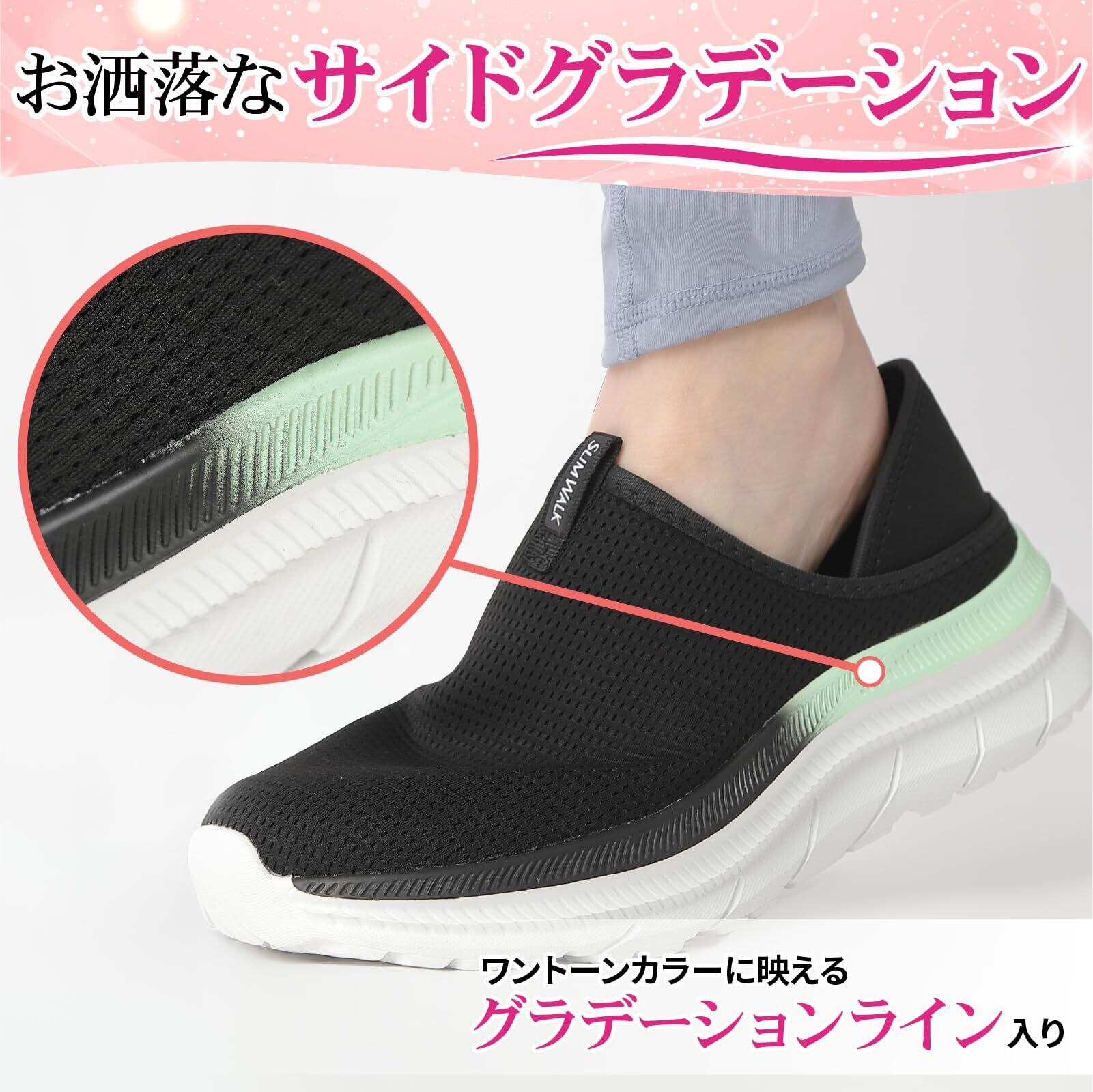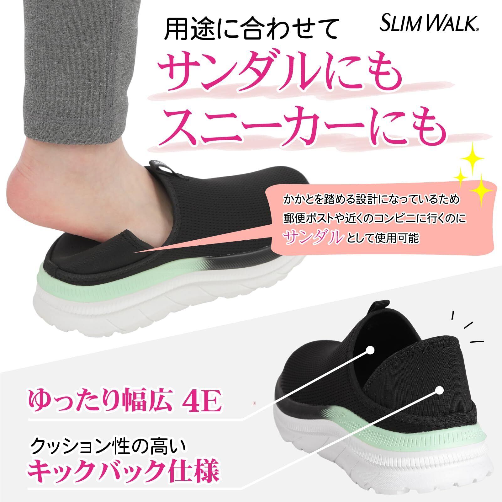 [スリムウォーク] かかとが踏める2Wayサンダルスニーカー 幅広4E 美脚インソール搭載 撥水加工 軽量 抗菌防臭 かかと柔らか 厚底スニーカー 黒 グレー ピンク ブルー 22.5 23.0 23.5 24.0 24.5