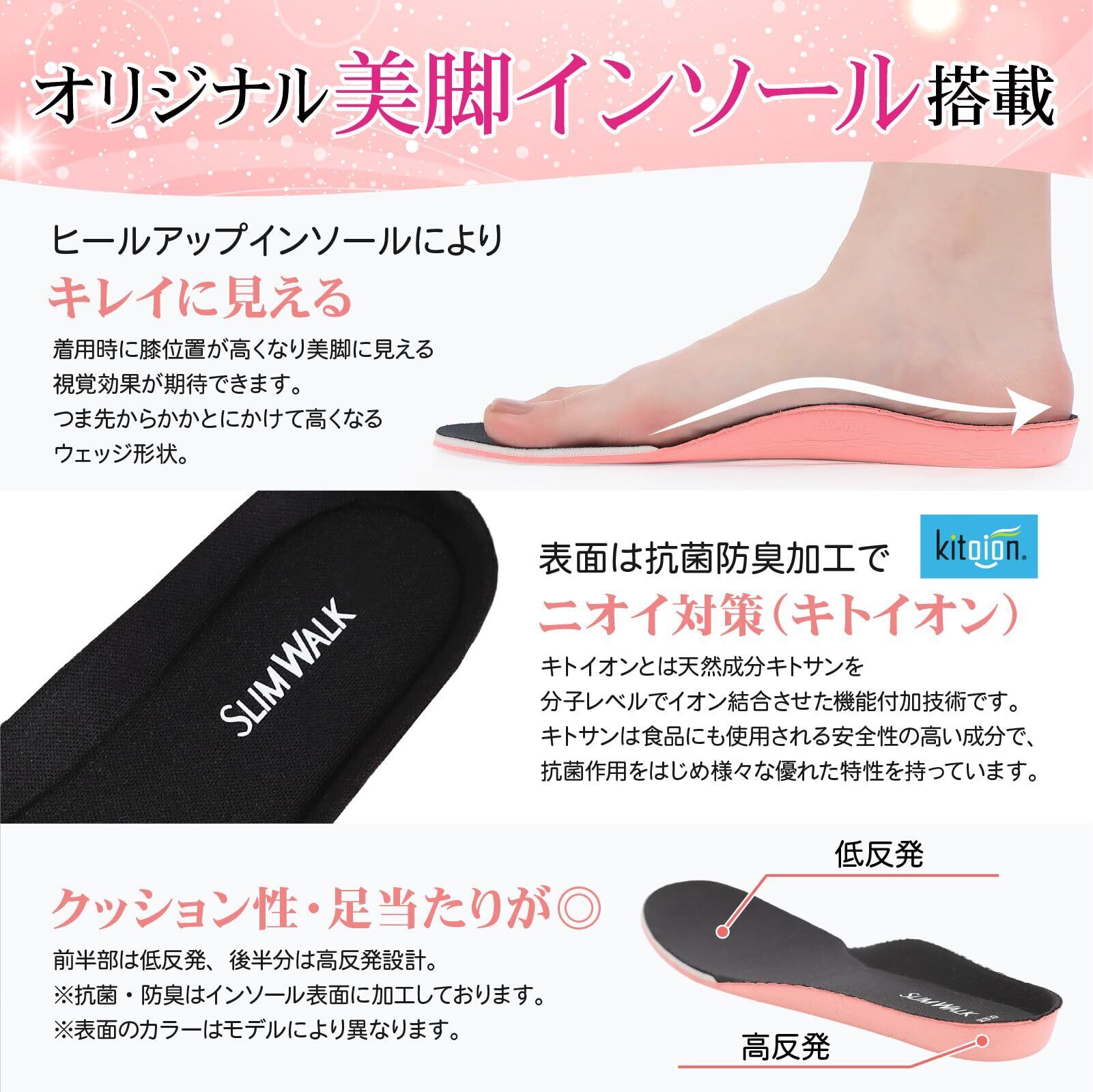 【オリジナル美脚インソール搭載】 ヒールアップインソールによりスッキリ見え、着用時に膝位置が高くなり美脚に見える視覚効果が期待できます つま先からかかとにかけて高くなるウェッジ形状です
